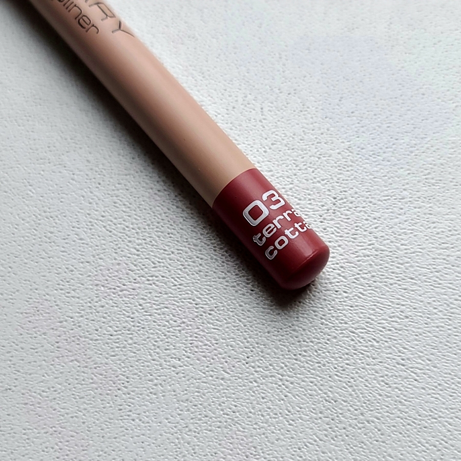 И карандаш в оттенке 03 Terra cotta — терракотовый с рыжим подтоном, более яркий вариант.