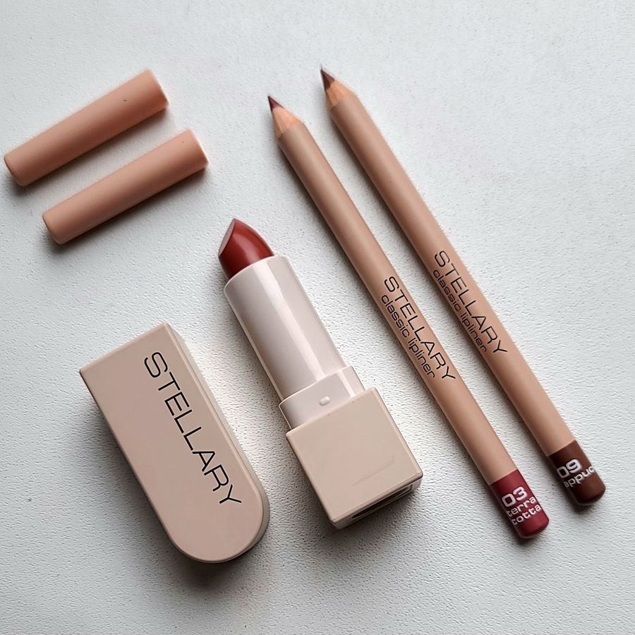 Всес привет! Недавно увидела у любимого блогера обзор на шикарные карандаши для губ Stellary в цвете Cappuccino — и просто не смогла удержаться! Заказала сразу два оттенка: нежный 09 Cappuccino и насыщенный 03 Terra cotta.