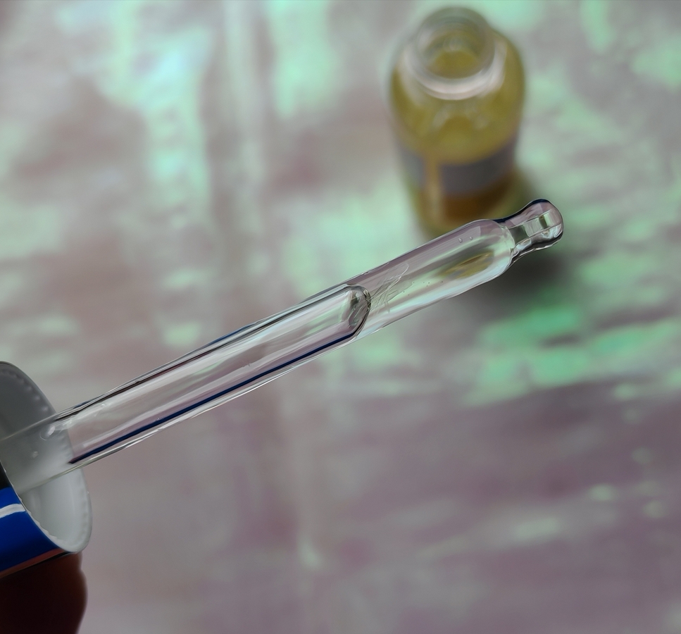 Дозатор — стеклянная пипетка. Ей удобно набирать и дозировать продукт.