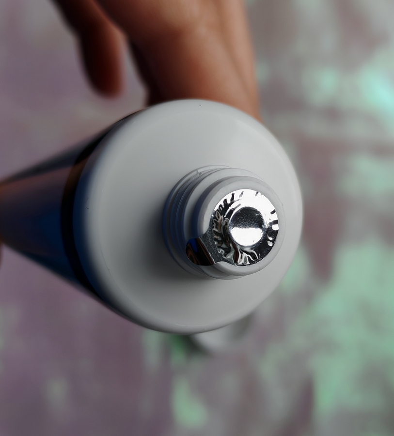 Туба выполнена из белого мягкого пластика с фиолетовыми надписями. Оформление мне нравится, ничего лишнего.