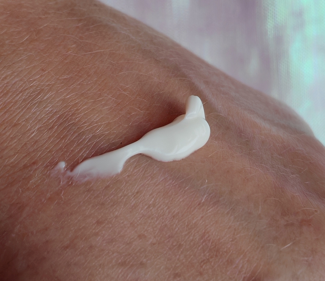 Текстура лёгкая кремовая. Она легко распределяется и быстро впитывается, не оставляет липкости, стянутости, белых разводов.
