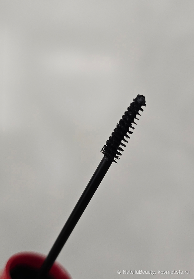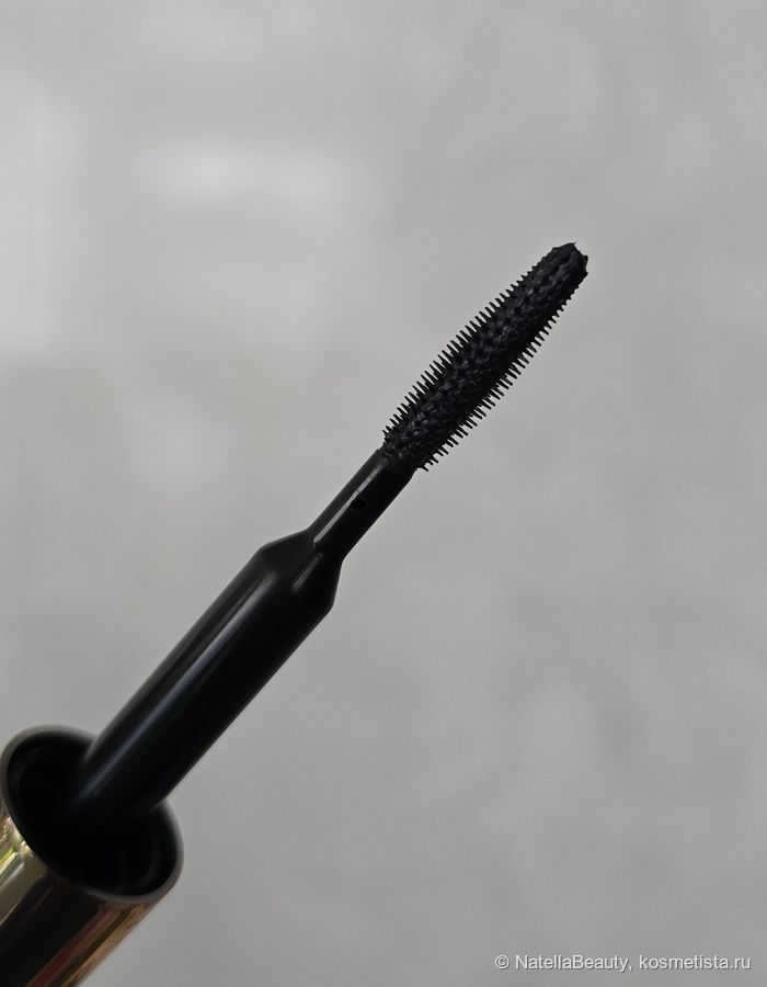 Тушь очень интересная не только упаковкой, но и двойной щеточкой. Нет, не такой как у Bourjois Twist с поворотом, здесь скорее как у Make up for Ever. Две щеточки и два резервуара под каждую. Для российского массмаркета это просто супер!