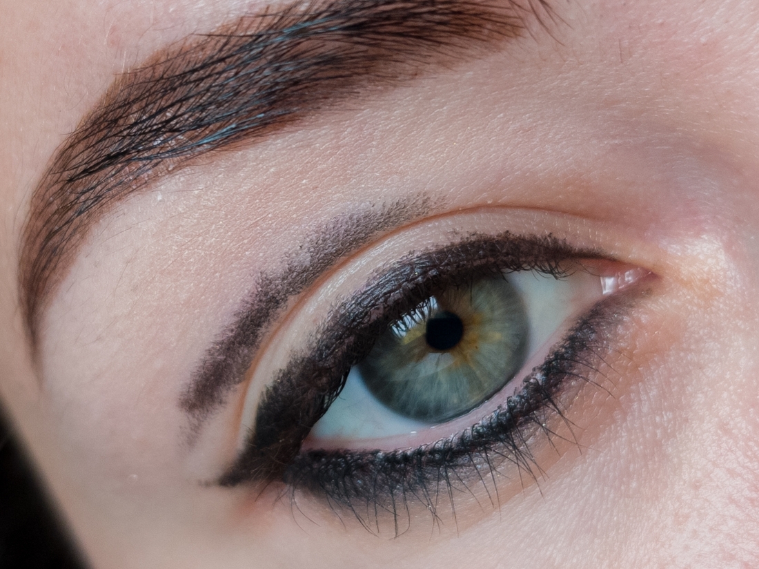 На плоскую кисть набираю черные тени и аккуратно, набиваю их поверх карандаша. У меня тени из палетки b.colour Professional Capsule 01 Secret weapon и чёрный в ней 10/10!