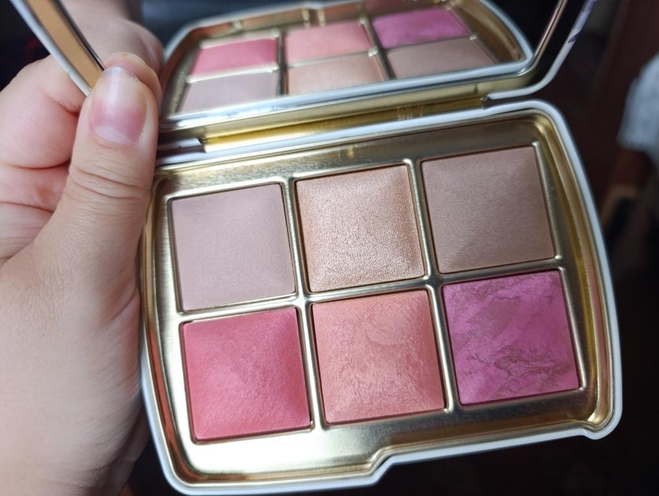 Внутри 2 пудры, бронзер, хайлайтер и 2 оттенка румян
