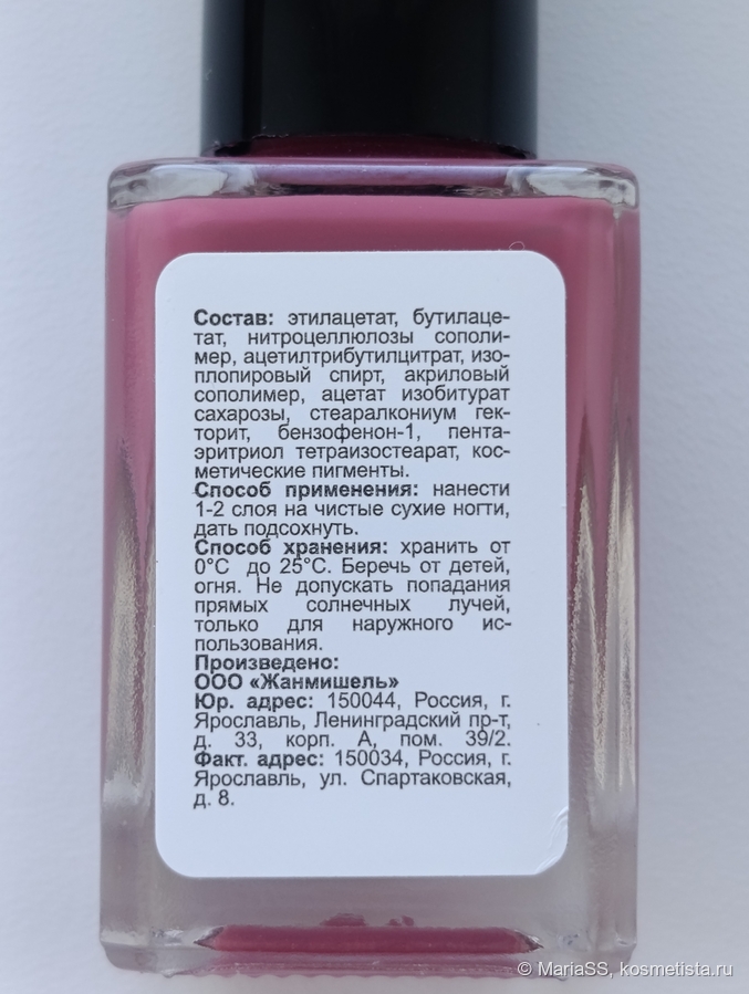 Скажу сразу, что лак бюджетный, но очень даже неплохой. Уверена, что цена не всегда определяет качество. Произведён лак в России, в городе Ярославле. Ни толуола, ни других токсичных веществ я в составе не обнаружила.