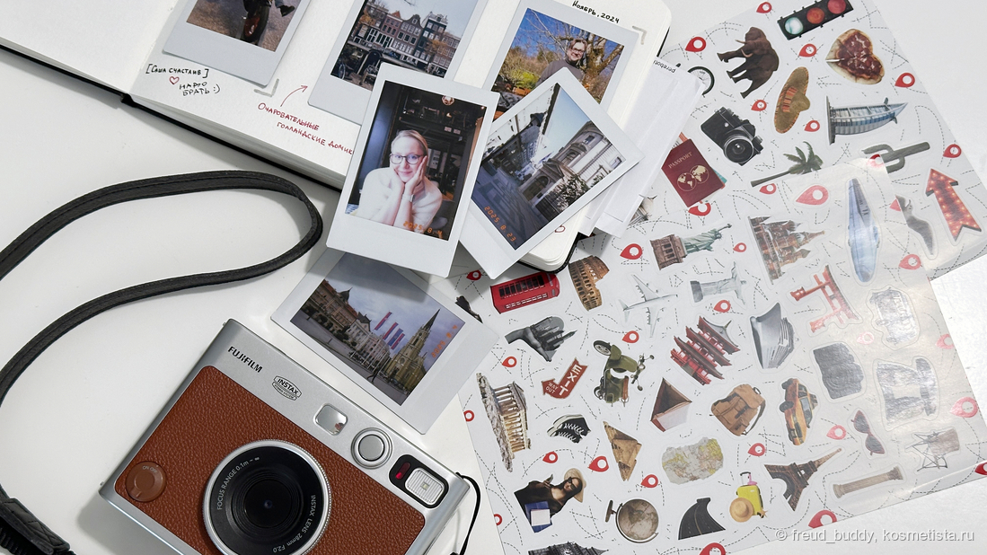 Сажусь за свое маленькое хобби. Сейчас я собираю фотоальбом из полароидных фото из наших путешествий. Украшаю его стикерами, вклеиваю билетики и все такое.