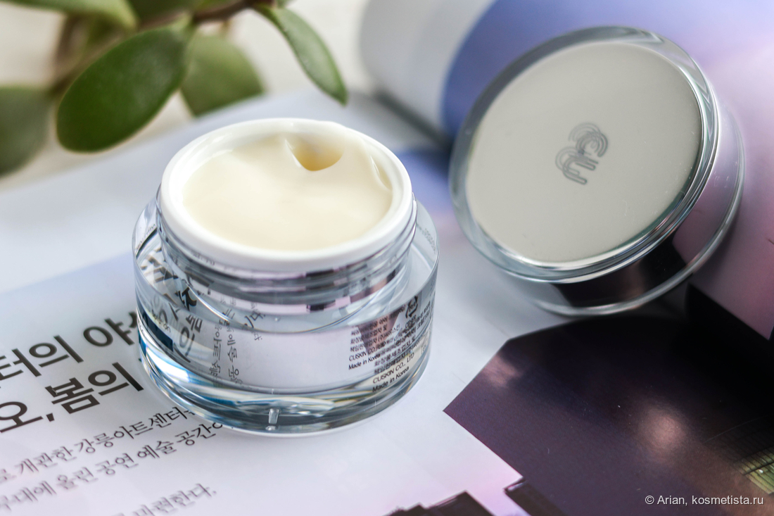 Текстура не слишком густая, но и не жидкая, слегка гелевая, «сопливая», как одна моя подруга обычно описывает корейские средства. Крем очень гладкий, не тугой и быстро разносится по коже. Впитывается обычно 5-15 минут в зависимости от уровня влажности. С другой косметикой дружит, обычно не скатывается на ни других средствах, ни под, например, праймером или консилером.