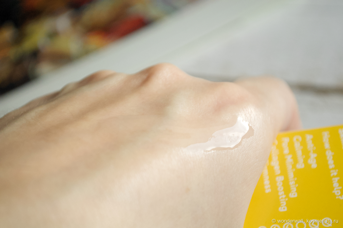 Сыворотка впитывается в кожу за полминуты, оставляет после себя некритичную липкость, которая как будто слегка стягивает кожу. При этом увлажняет, но поверхностно, поэтому про следующий этап в виде крема забывать не стоит.