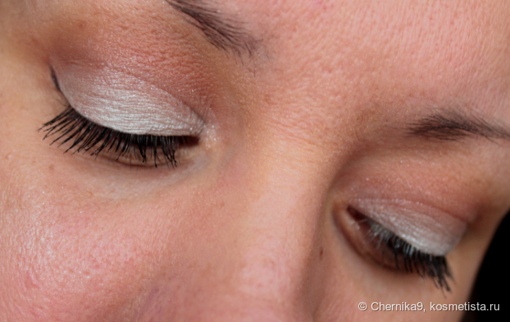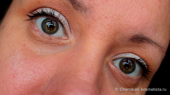 Я нанесла его ближе к ресницам и растушевала. Пришлось наносить несколько раз, чтобы белый оттенок получился выразительным. В результате он у меня смотрится так.