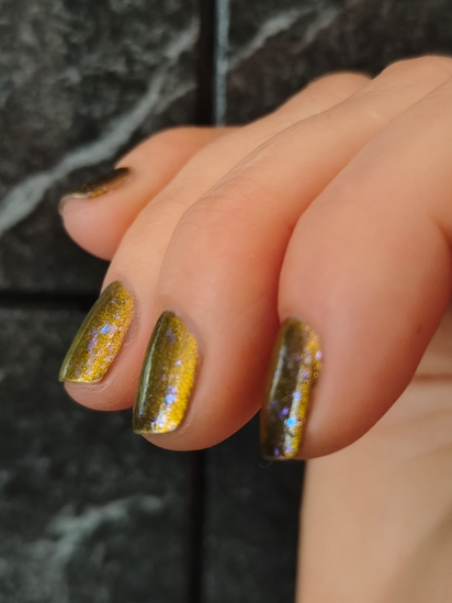 По цветовому сочетанию и эффекту это уникальный лак. Я не видела раньше подобного. Металлический магнитный шиммер — это как яркие монеты из пиратского сундука. Золото ждет нас, золото ждет…