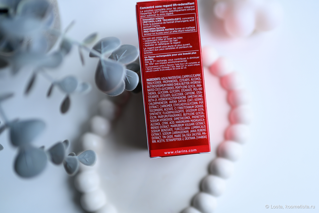 Clarins Total Eye Lift — прекрасный продукт с видимым результатом уже буквально после первого нанесения, но лучший результат достигается не сразу, действие пептидов не мгновенное, как и всего ухода. Опять же, если область слишком проблемная, то только концентрат совсем чуда не сотворит, но ситуацию улучшит.