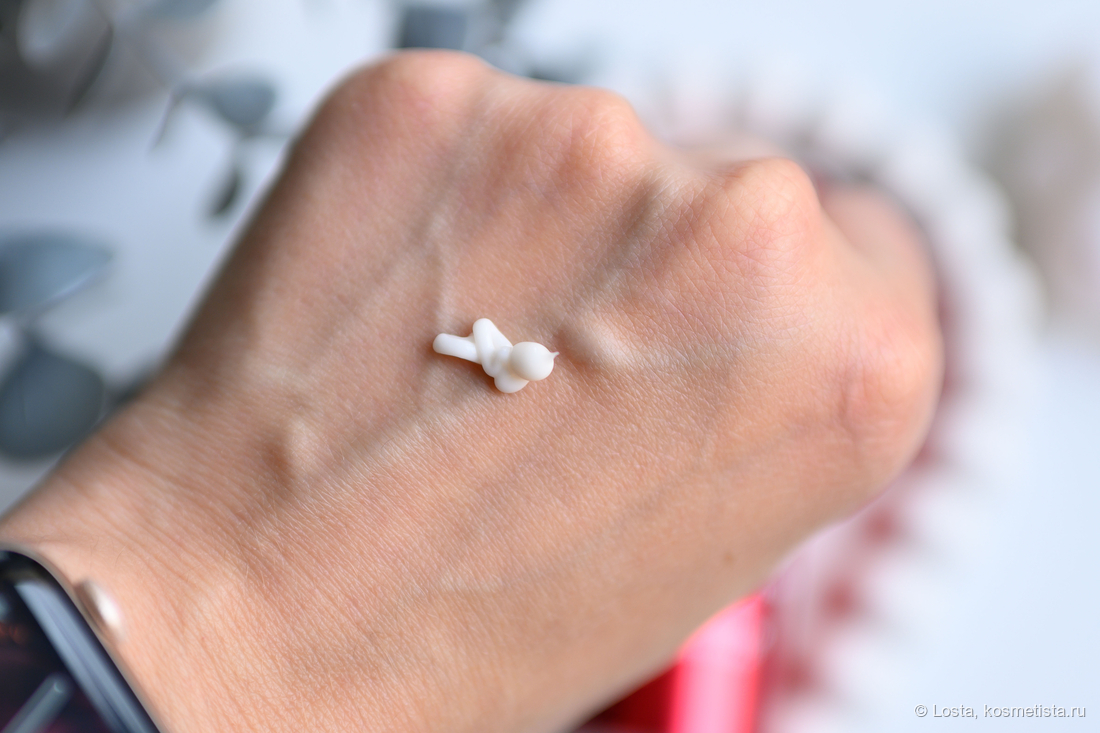 Очень нежная, лёгкая текстура, которая невероятно легко распределяется. Отдушка фирменная бренда, но более лёгкая, без красителя.