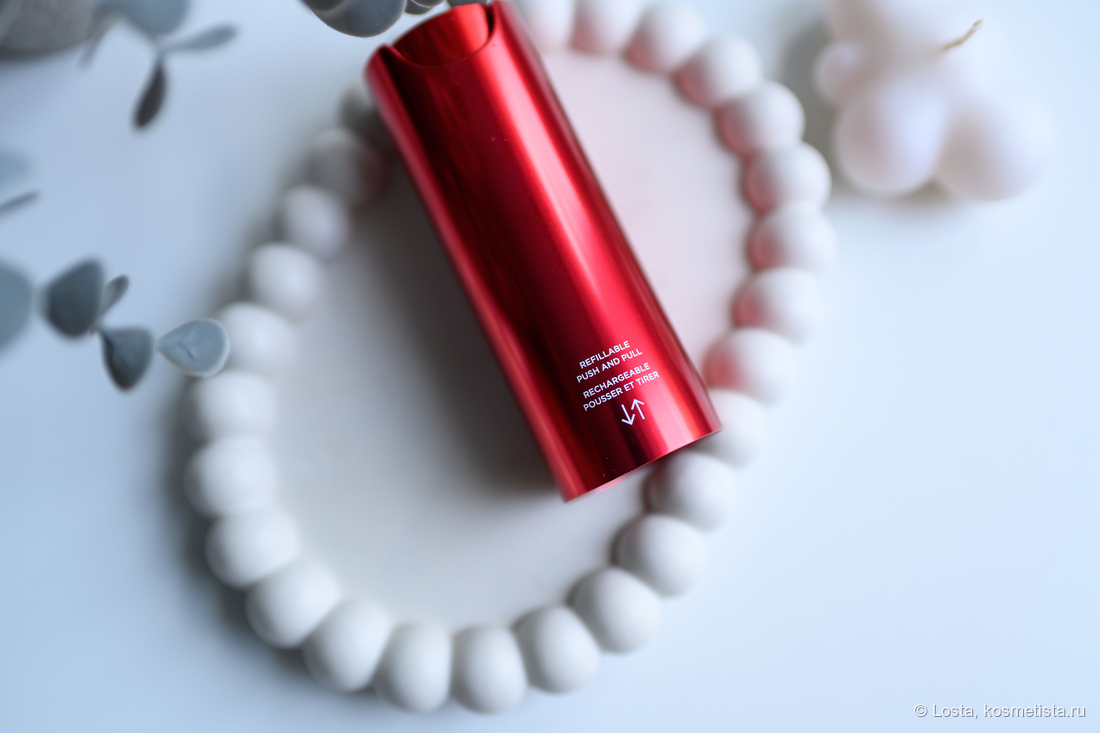 Выпускается в красной металлизированной коробке, очень красиво и ярко. Флакон также красный, металлизированный. Стильный, лаконичный, а также такого цвета, что всегда обратишь внимание и точно не забудешь нанести.