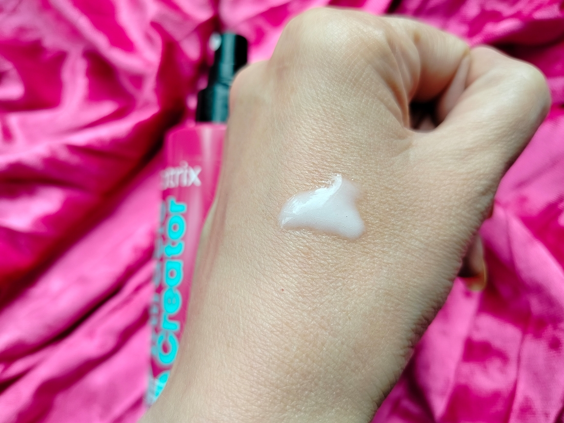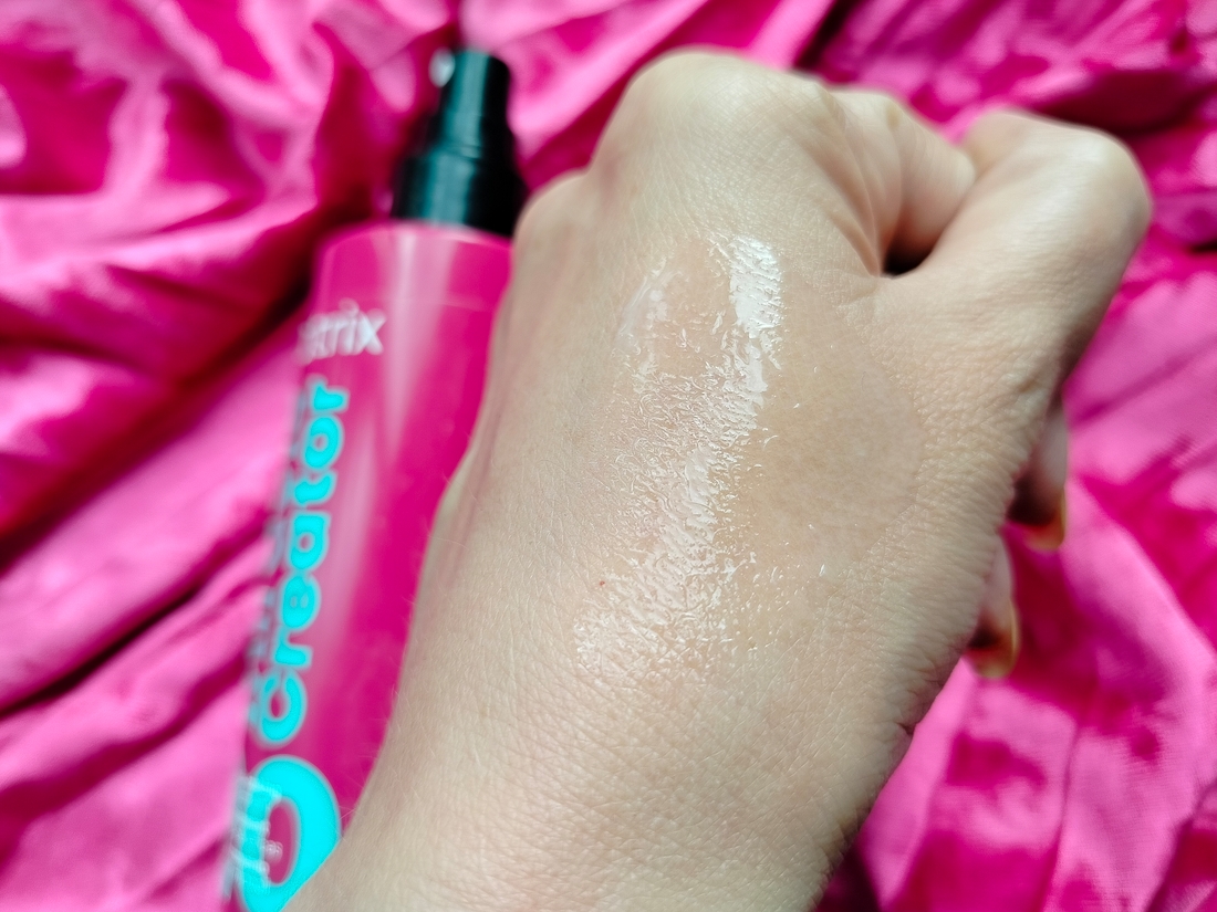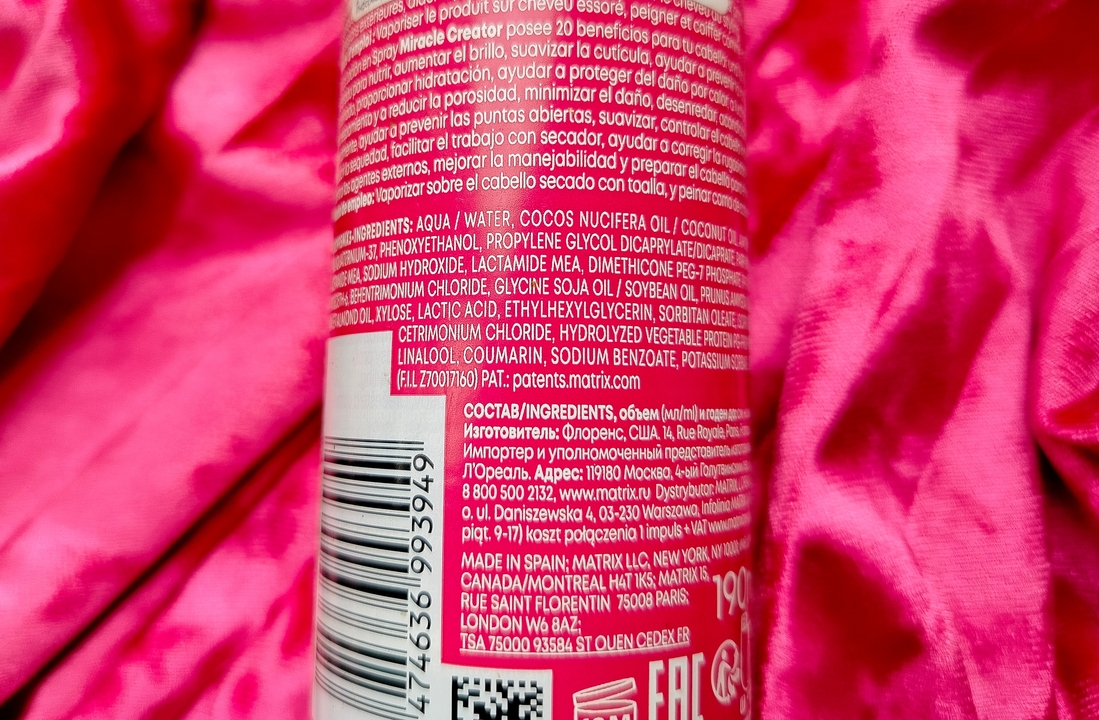 Для несмываемого средства это совсем нетипично — иметь в основе не силиконы и пленкообразователи, а масло, которое обычно добавляют в незначительном количестве, но, возможно, именно по этой причине мне так полюбился этот крем-спрей от Matrix.
