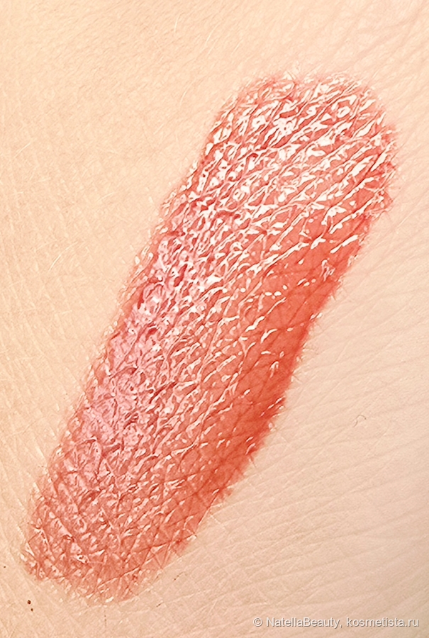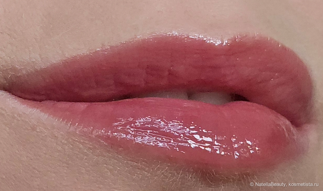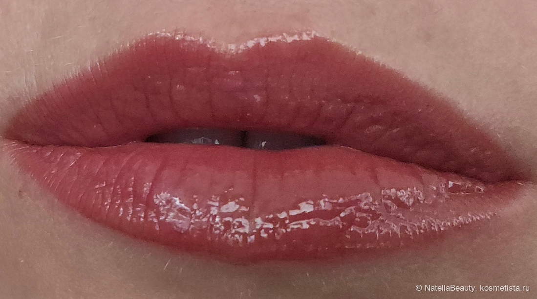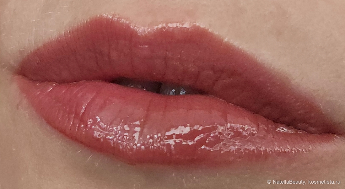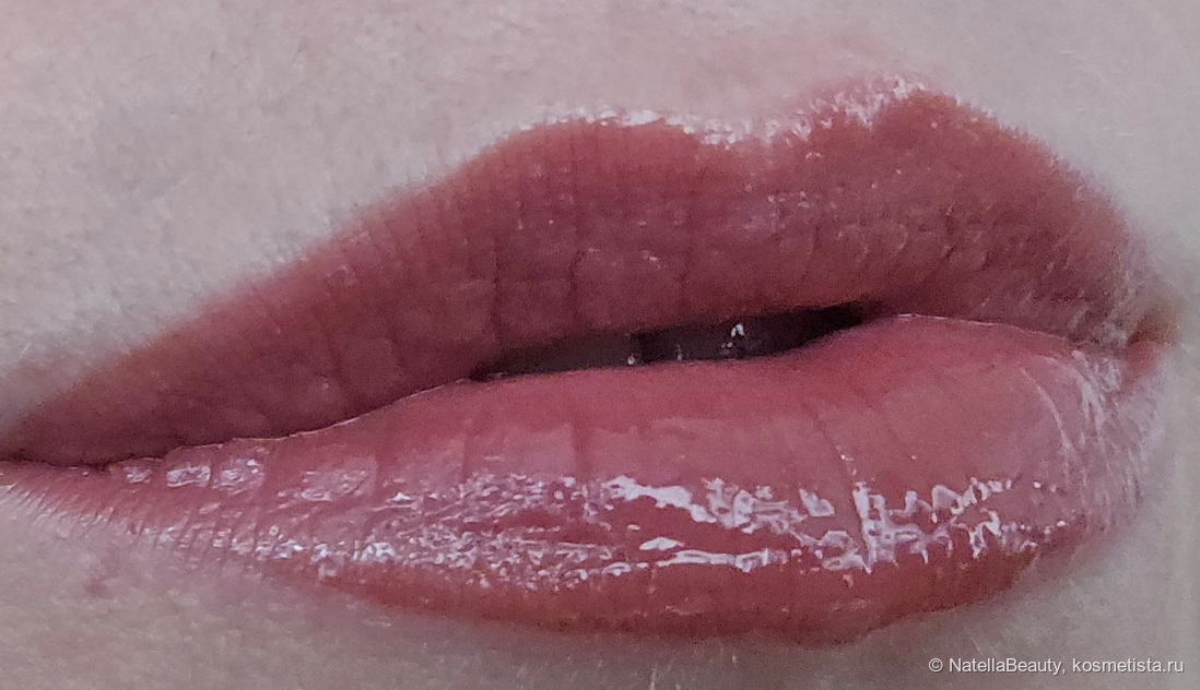 Не сушит губы, не скатывается, не растекается. Лежит очень комфортно на моих сухих губах, не подчеркивает трещинки и шелушения, а за счёт глянца, наоборот, их скрывает.