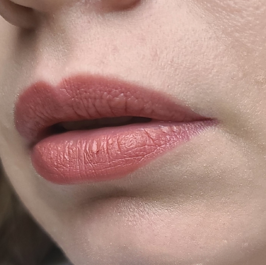Помада держится до 4 часов (с перекусами!). После еды цвет немного тускнеет, но не исчезает полностью — не приходится экстренно поправлять макияж.
