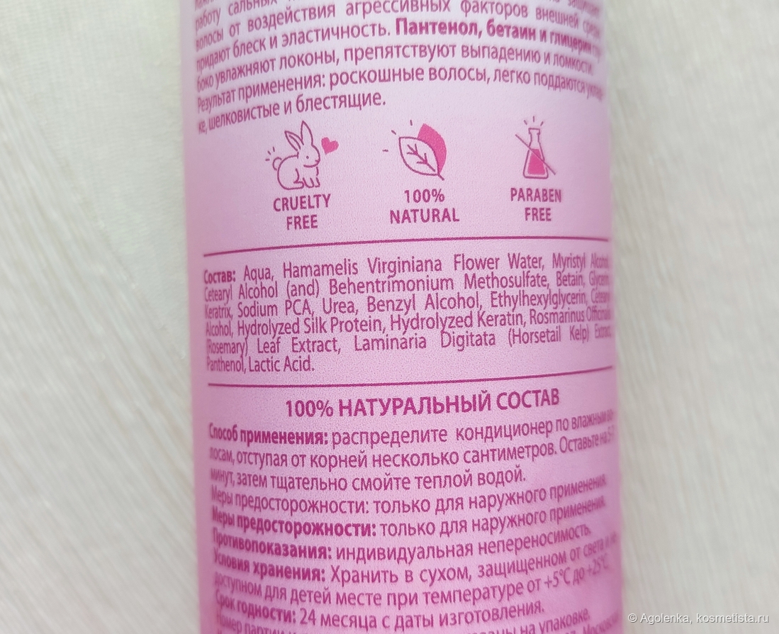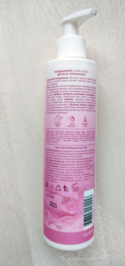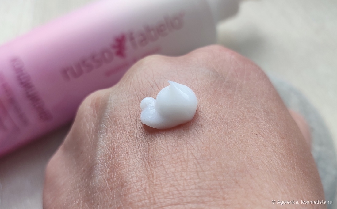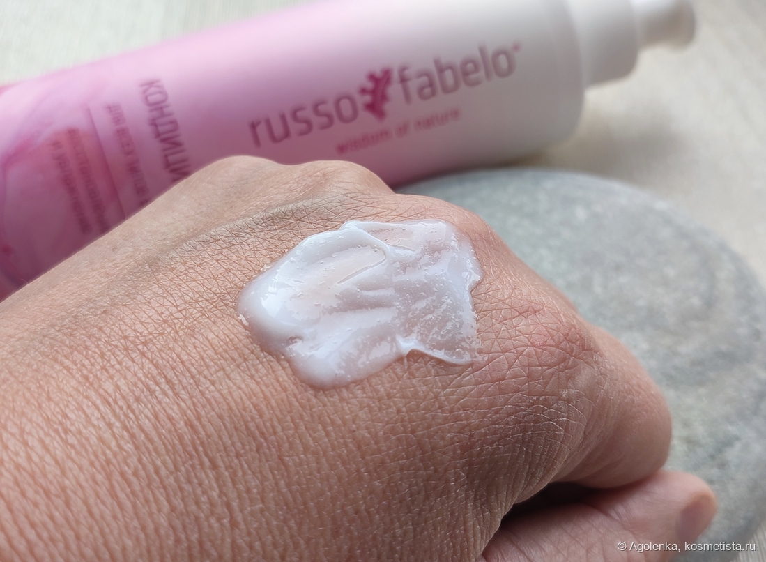 Кондиционер обладает густой лёгкой текстурой белого цвета.