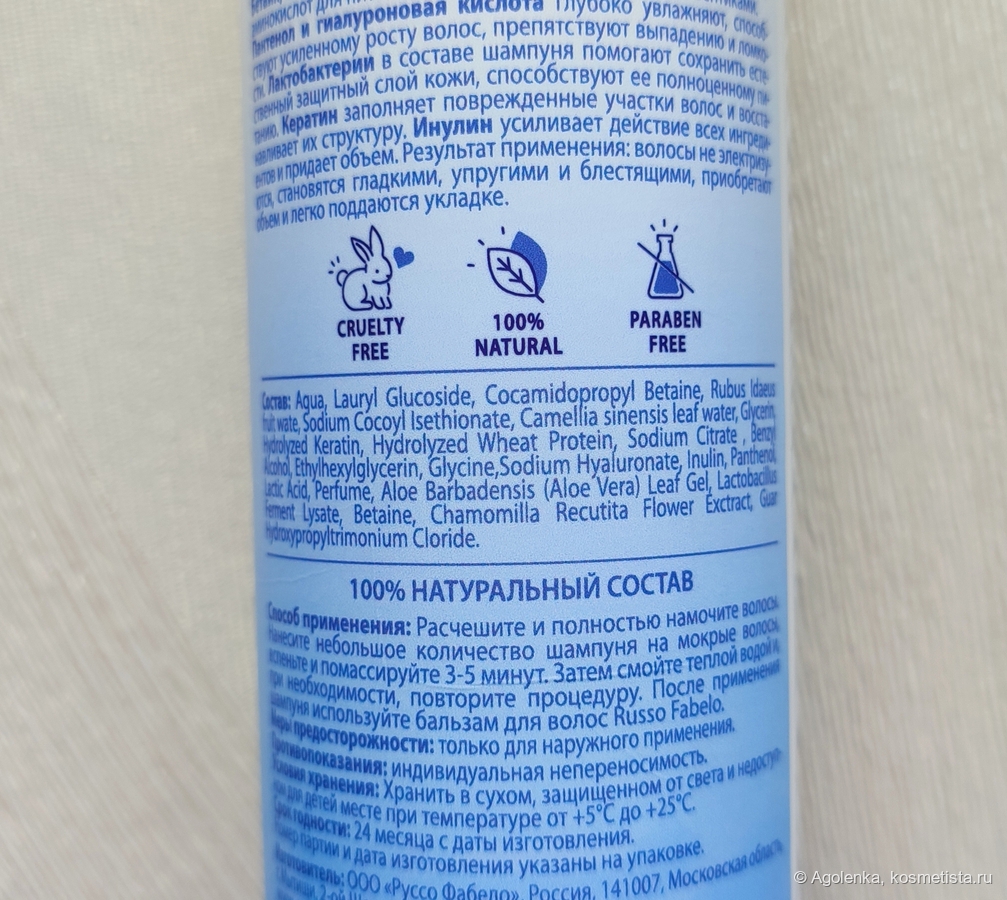 1) Шампунь Защита микробиома кожи для всех типов волос Rusdo Fabelo.