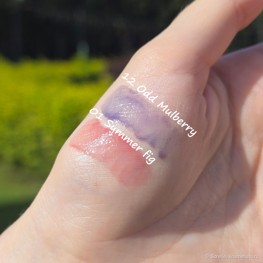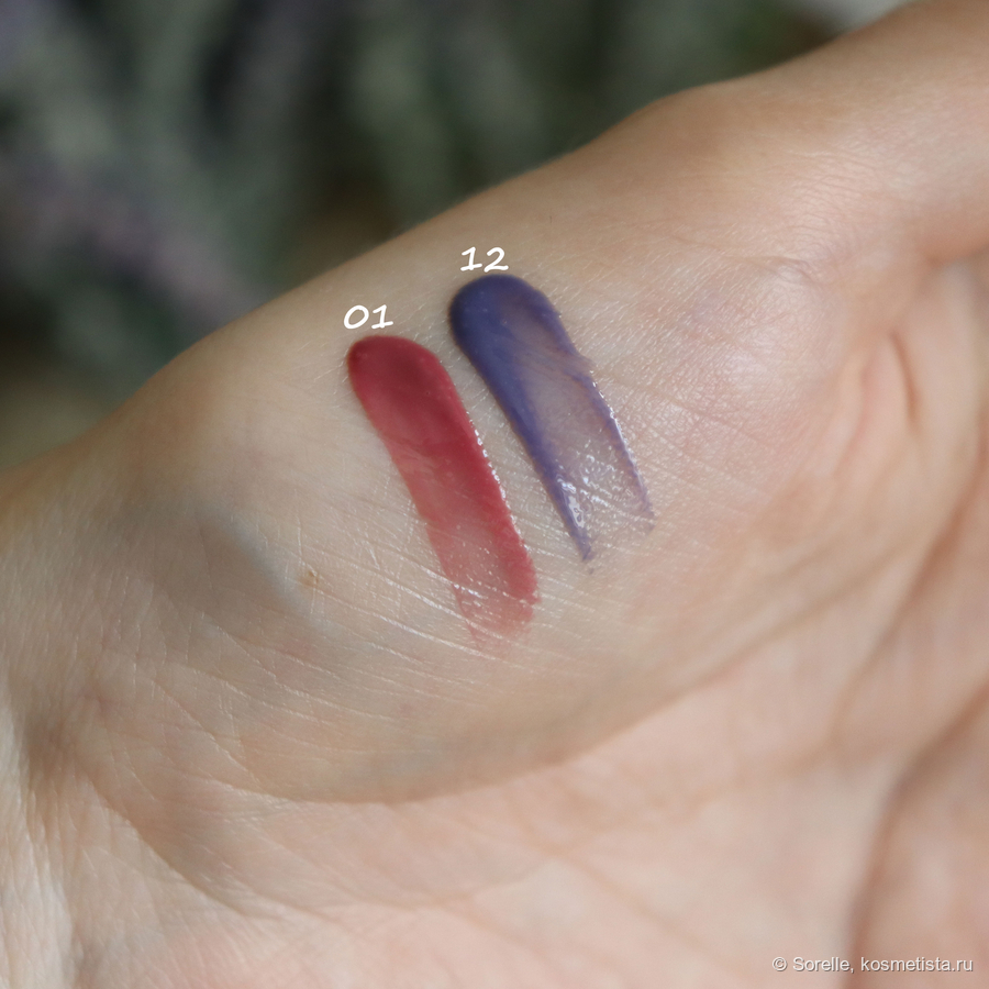 Отдушки у тинтов разные — 01 пахнет мне чем-то фруктово-сладковатым, а 12 — ягодным. Кстати, у 12 оттенка запах менее яркий.