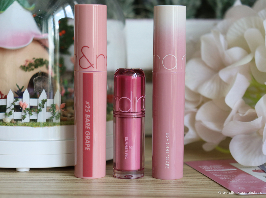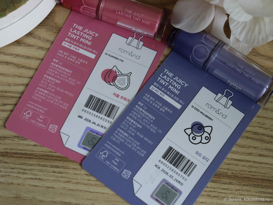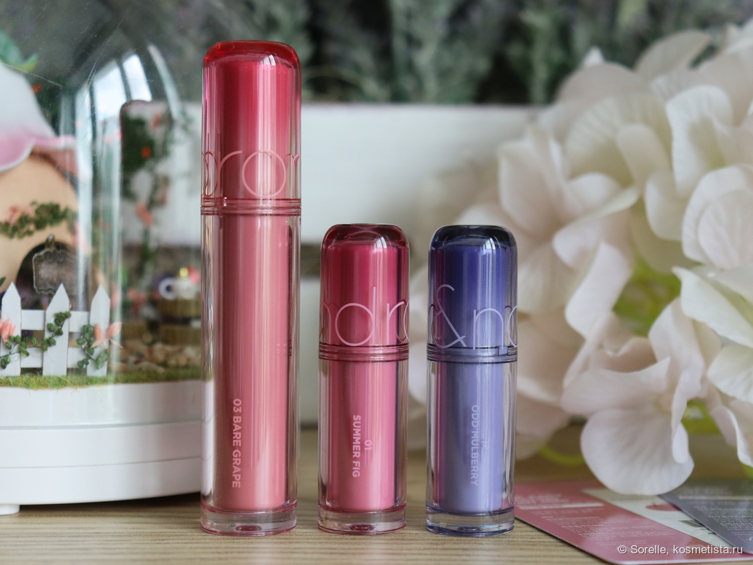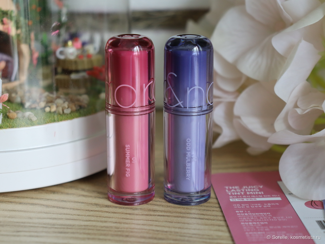 Этой весной бренд Rom&nd порадовал фанатов мини-версиями своих знаменитых тинтов. Всего в этой серии вышло 13 новых оттенков, почти все новые — ну, кроме черного, он в полноразмерной линейке тоже есть. Важный момент — оттенки отличаются от полноформатных, 01 в этой серии не совпадает с полноразмерным 01)