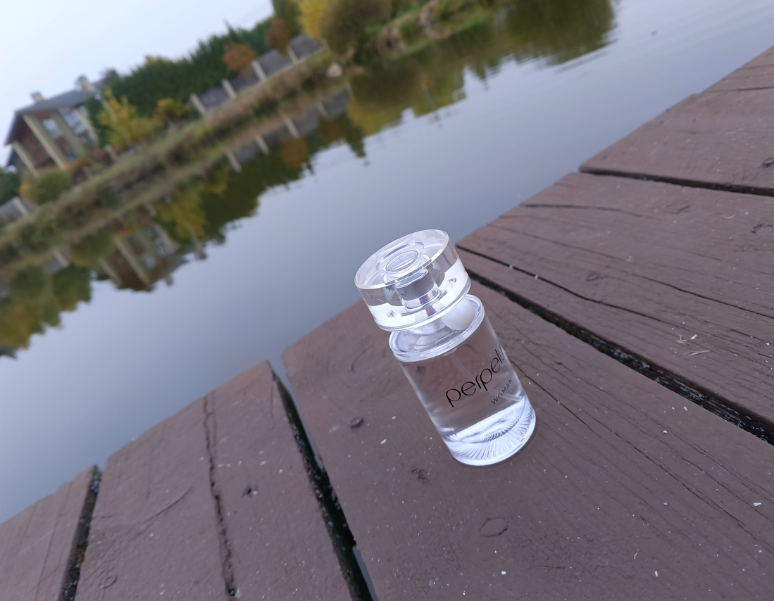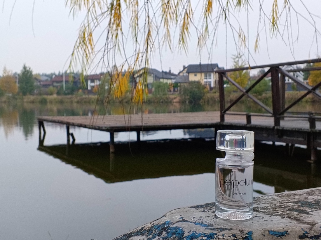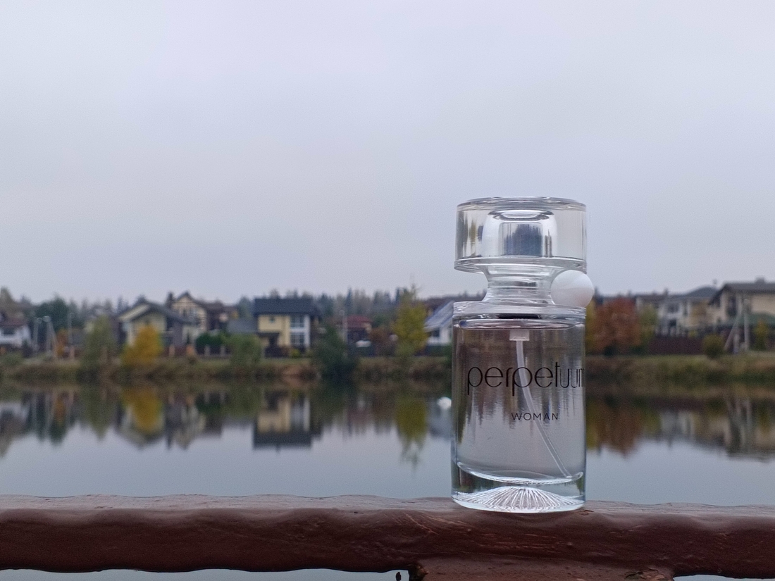 Аромат получился женственный (есть и мужская версия Perpetuum Man, там и флакон и жемчужина тёмные). Лично для меня звучание цельное, я сразу слышу влажные ландыши, яркие, насыщенные, мрачные. Они слегка заслащиваются фруктами, которые все как на подбор про влагу и сок. Я больше всего ощущаю грушу с оттенками несладкого арбуза.