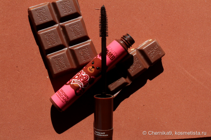 У этой туши выраженный коричневый оттенок, но я бы не назвала его шоколадным. Шоколадные оттенки светлее. Эта тушь значительно темнее шоколада да и оттенок у неё немного не тот.