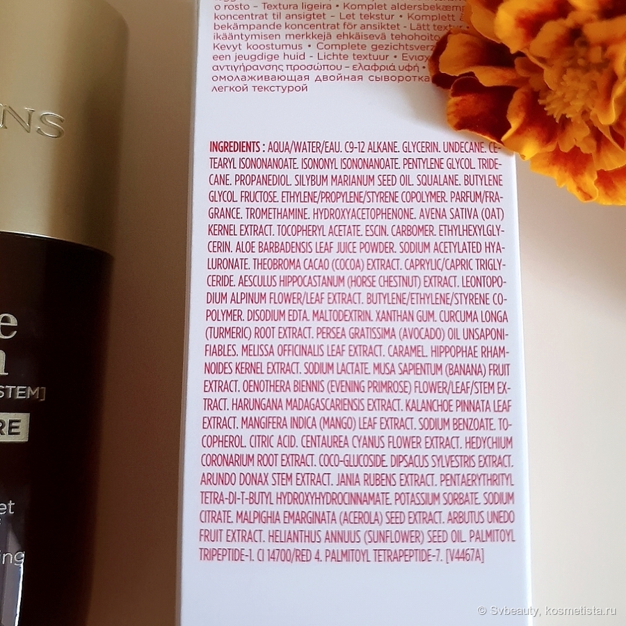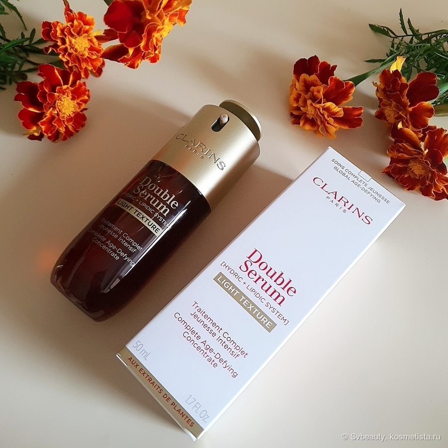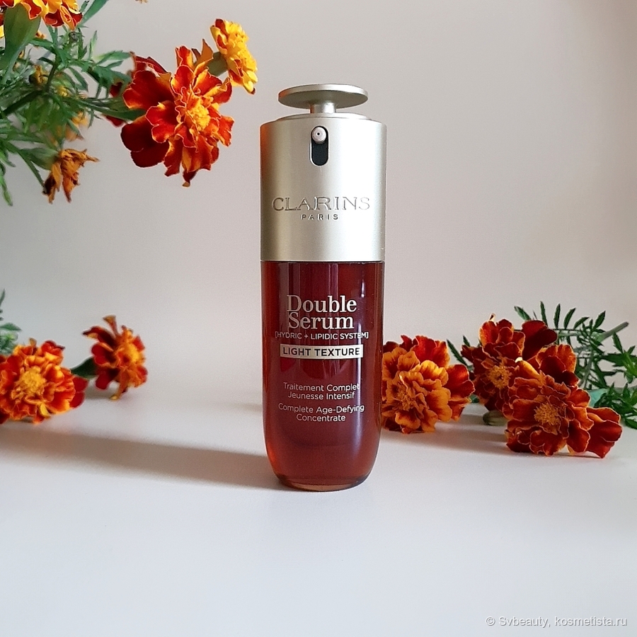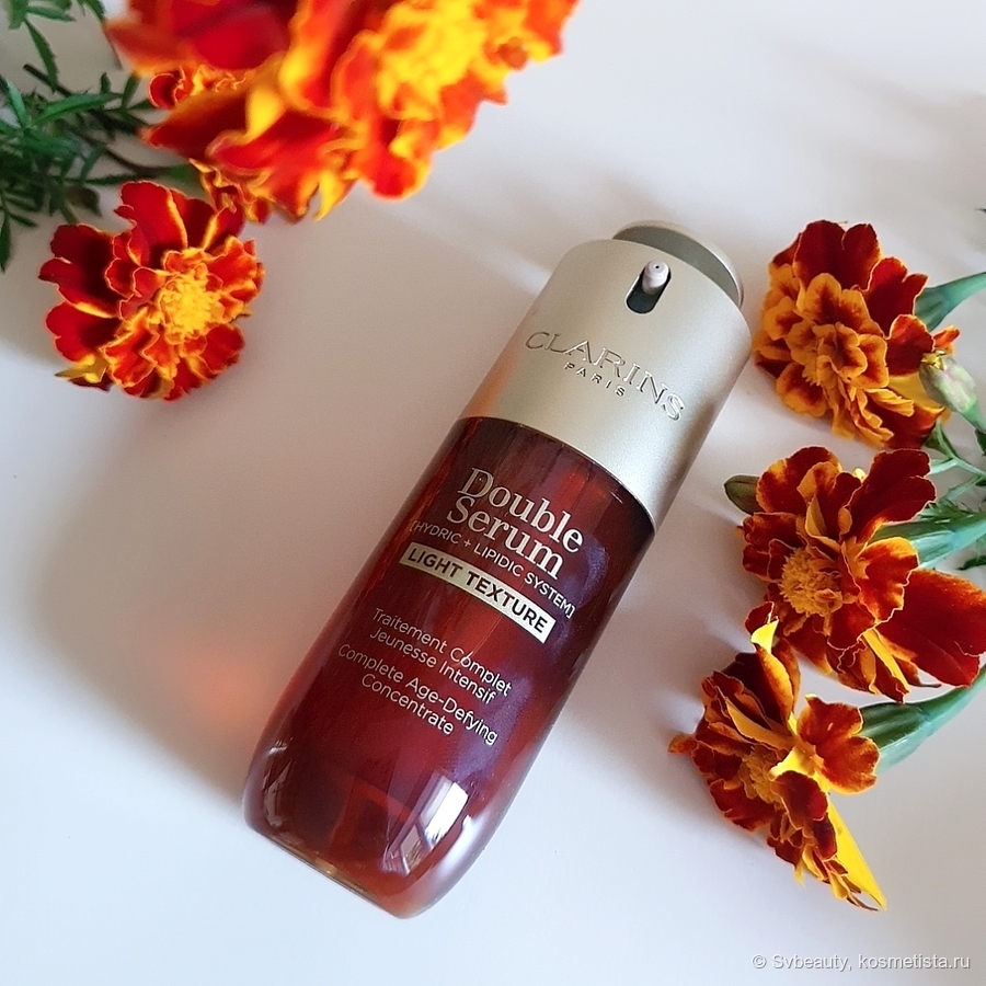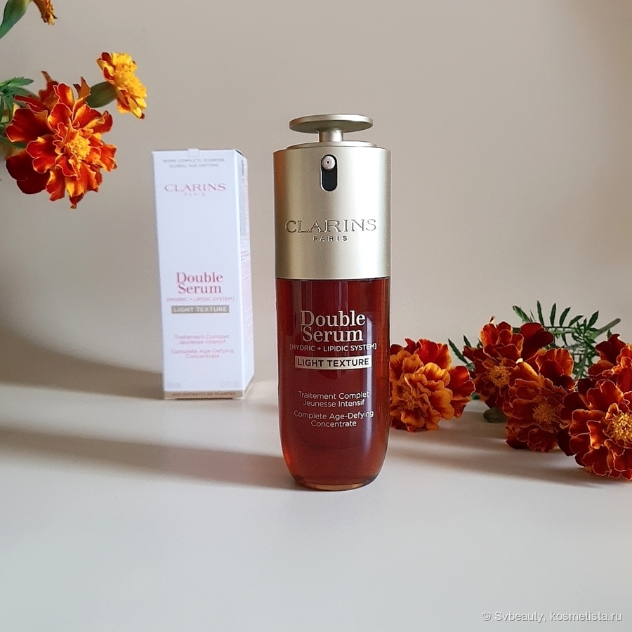Сегодня я хочу рассказать о моих впечатлениях от обновлённой омолаживающей двойной сыворотки для лица Clarins Double Serum Light Texture.