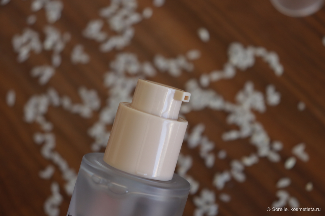 В составе 71% гидролата рисовых отрубей, ниацинамид, пантенол, бетаин, экстракты риса и какао, гиалуроновая кислота и церамиды.