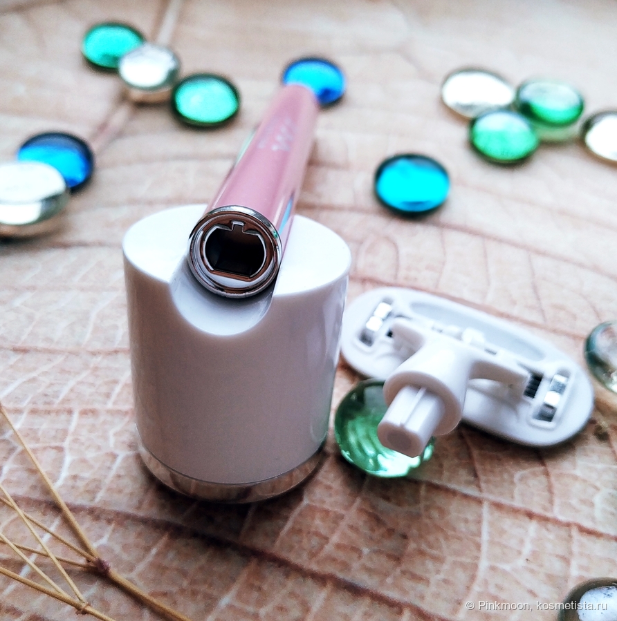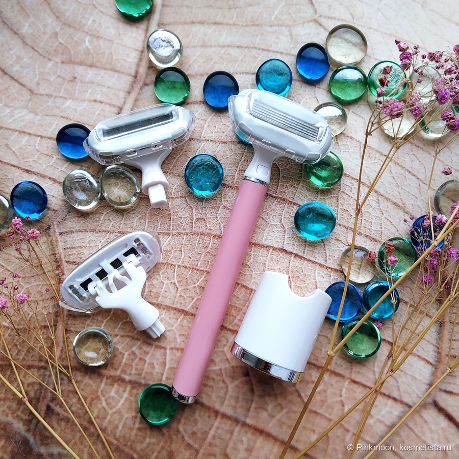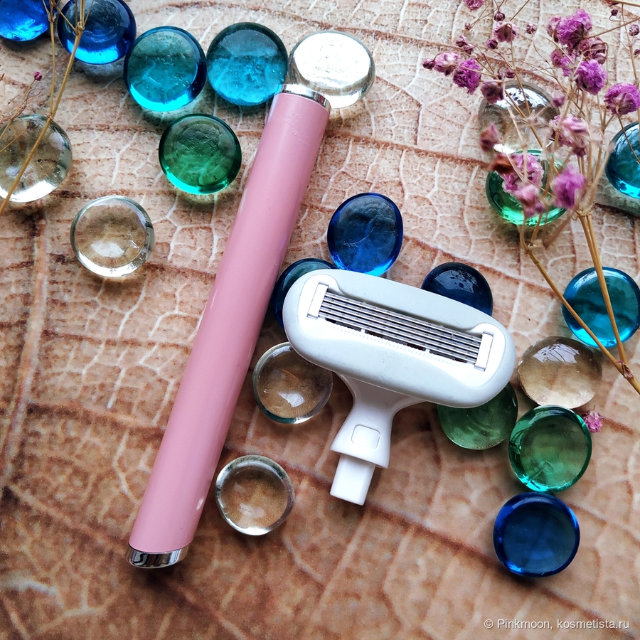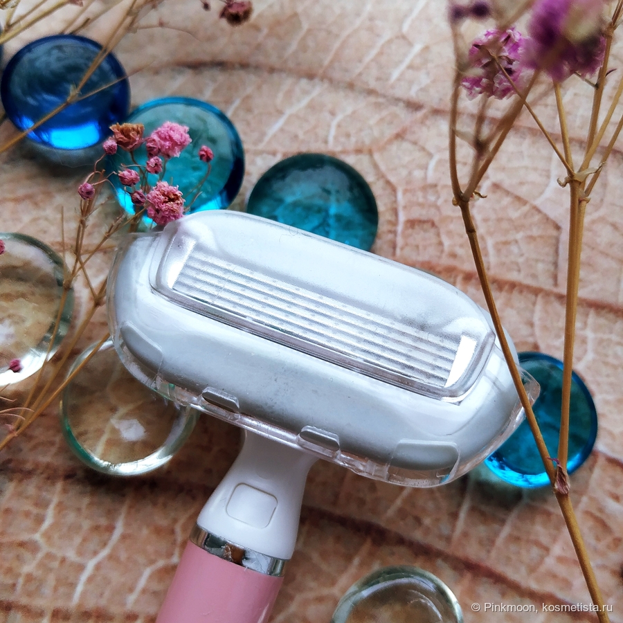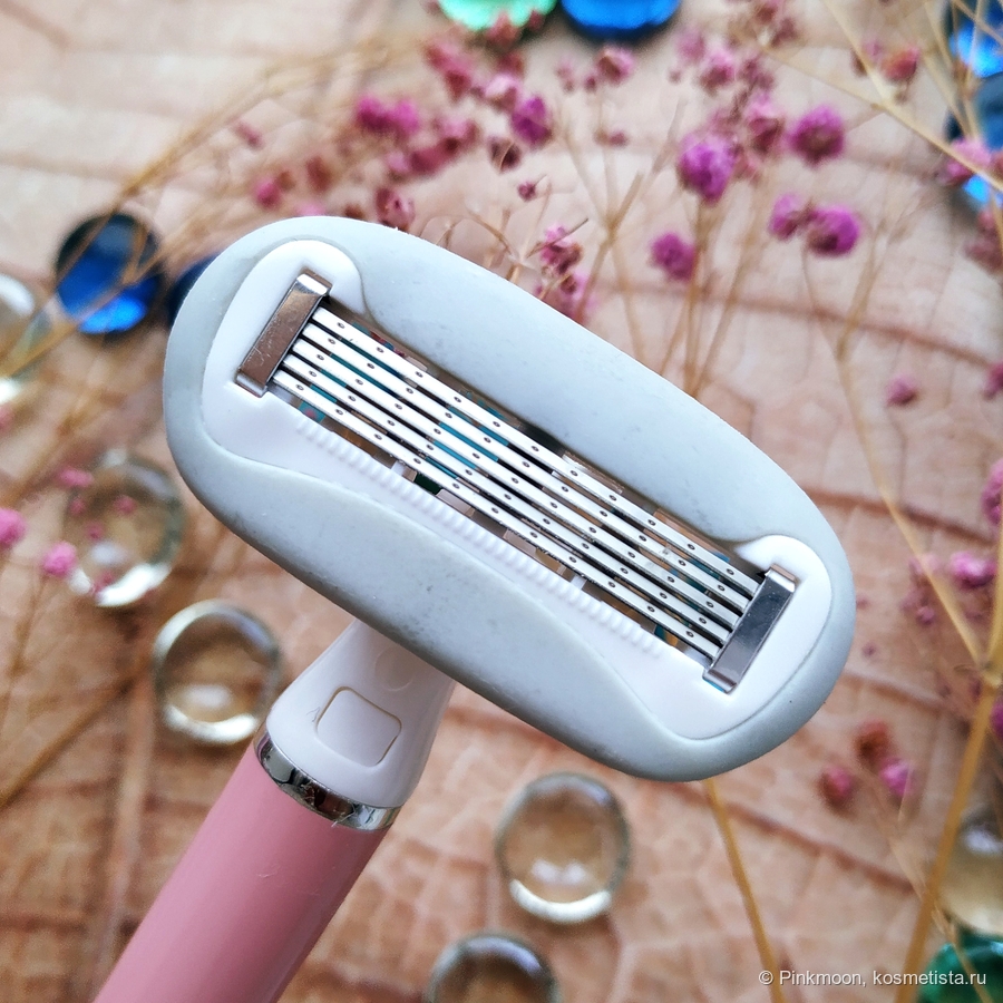 Сама бритва выглядит как игрушка. Она приятного розового цвета, с необычно крупной и округлой головкой.