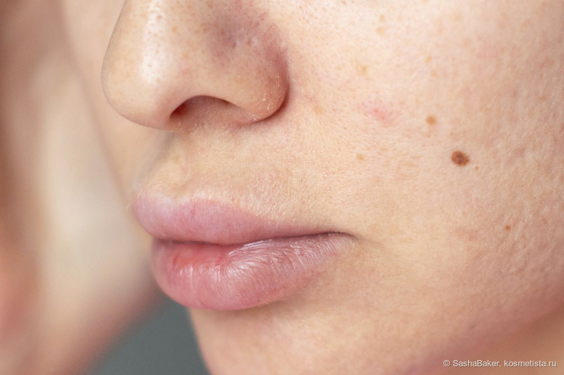 И после первого нанесения утром, к вечеру я трогаю кожу вокруг носа и чувствую, что шелушений стало гораздо меньше. Я не поверила и пошла к зеркалу, почти все шелушения сгладились и смягчились. Это очень быстрое действие, ведь прошло меньше дня. Я уже на тот момент была в восторге. Уже на второй день шелушения прошли полностью, они не замаскировались — их просто не было.