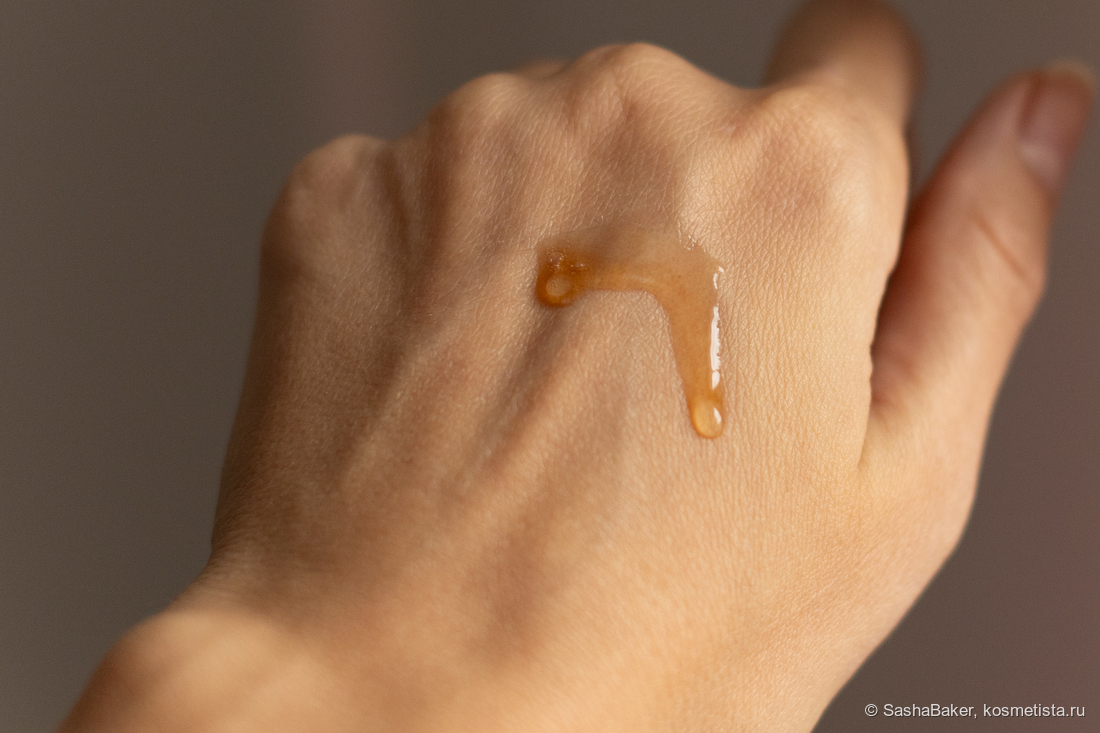 Текстура — тающий мёд. У меня версия Light, решила, что для моей комби кожи она должна подойти больше. И все же, это не водянистая эссенция. При нанесении она напоминает тёплый мёд с парфюмно-уходовыми нотами — плотная, но невесомая текстура превращается в лёгкое сияние и мощное увлажнение. Формула впитывается за 10-15 минут, и кожа подсвечевается изнутри блеском спелого нектарина.