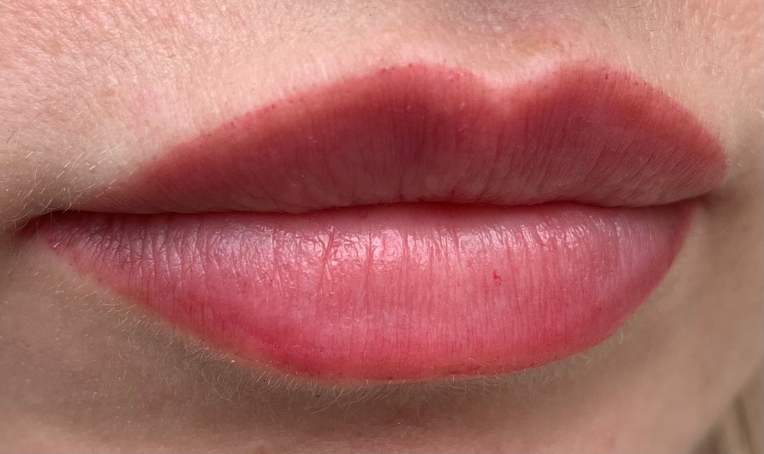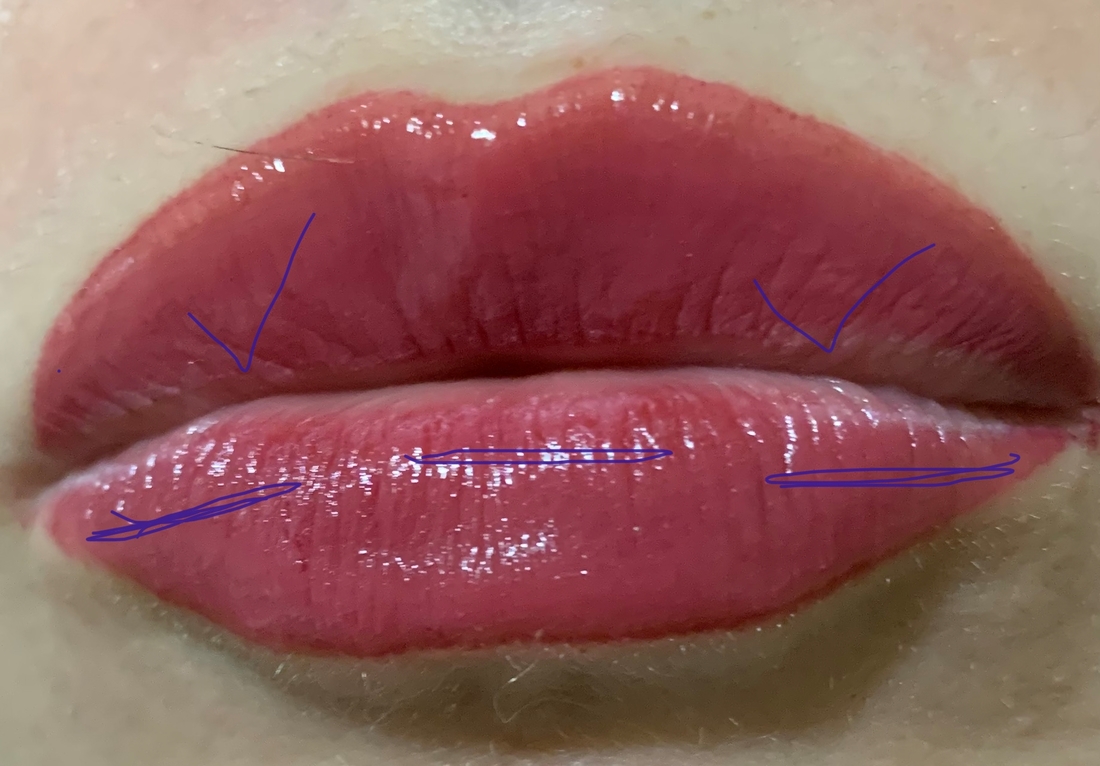И все были бы прекрасно, но через пару часов начинается какая-то ерунда! На губах в месте смыкания появляется белая полоса. При этом по контуру помада выглядит прекрасно! При более длительной носке, белая полоса переходит практически в градиент между контуром и линией смыкания!