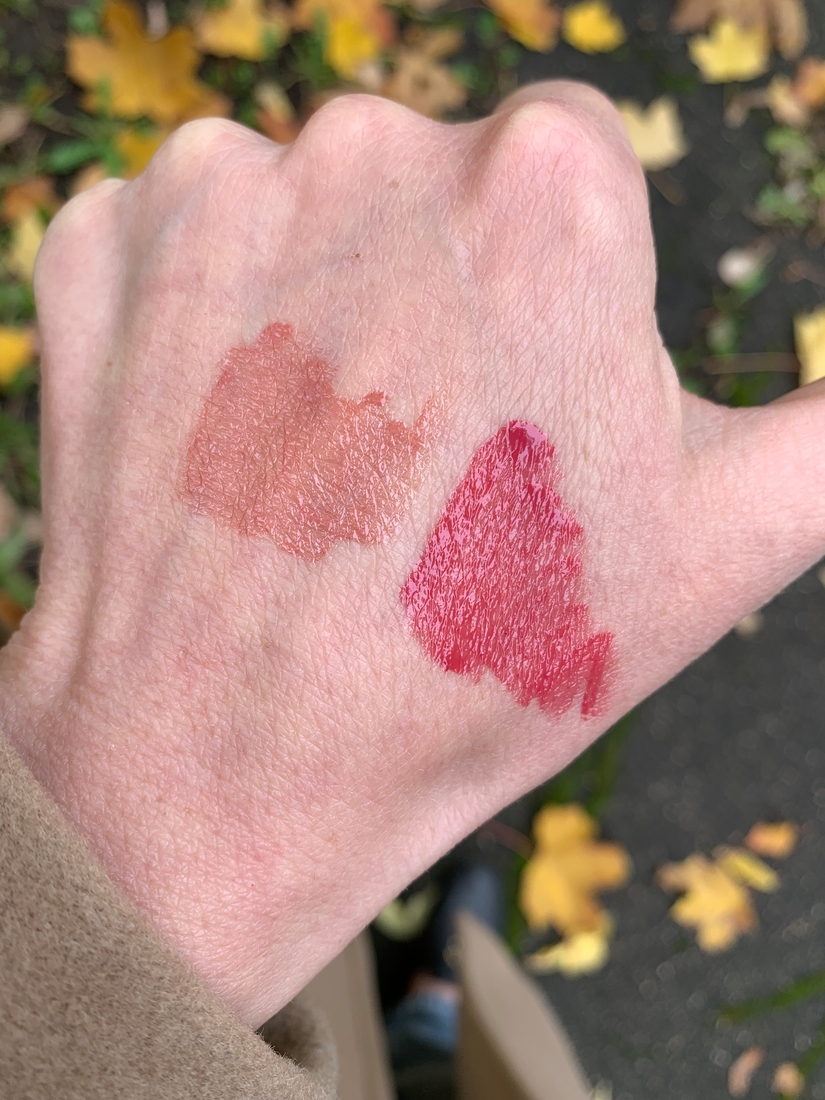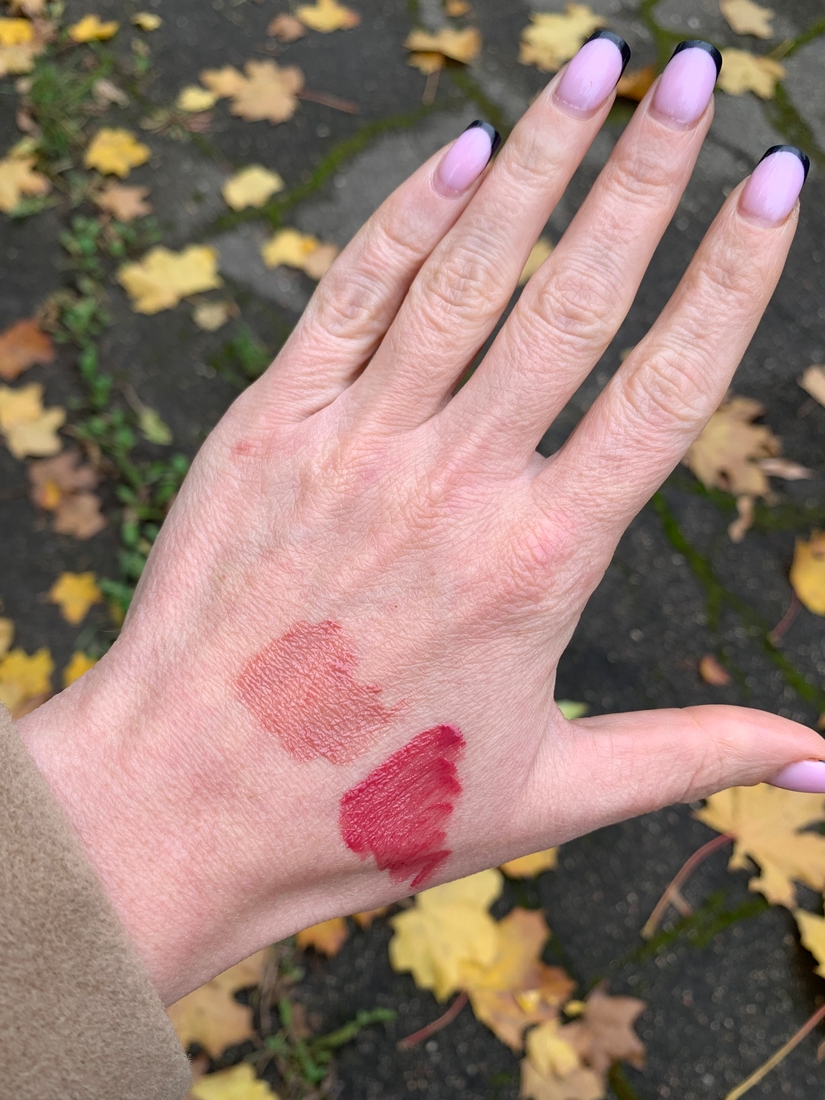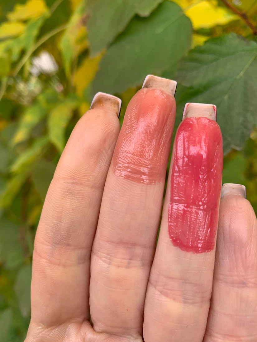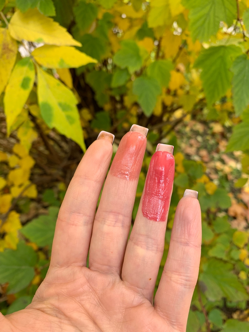 Перейдем к оттенкам и свотчам:на всех фото более светлый оттенок — For me by gold apple 05 Pink nude, более яркий — Divage glaze fusion 01 Fuchsia.