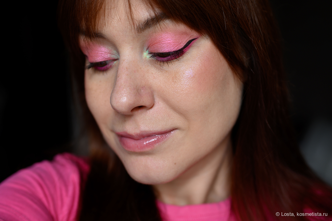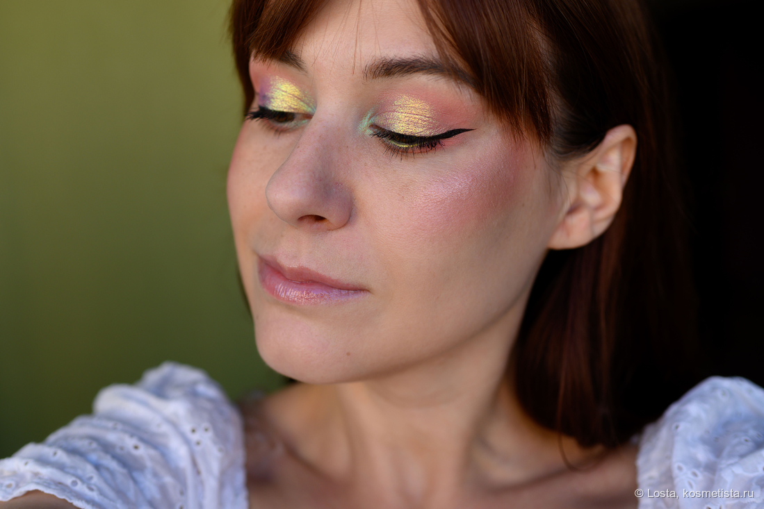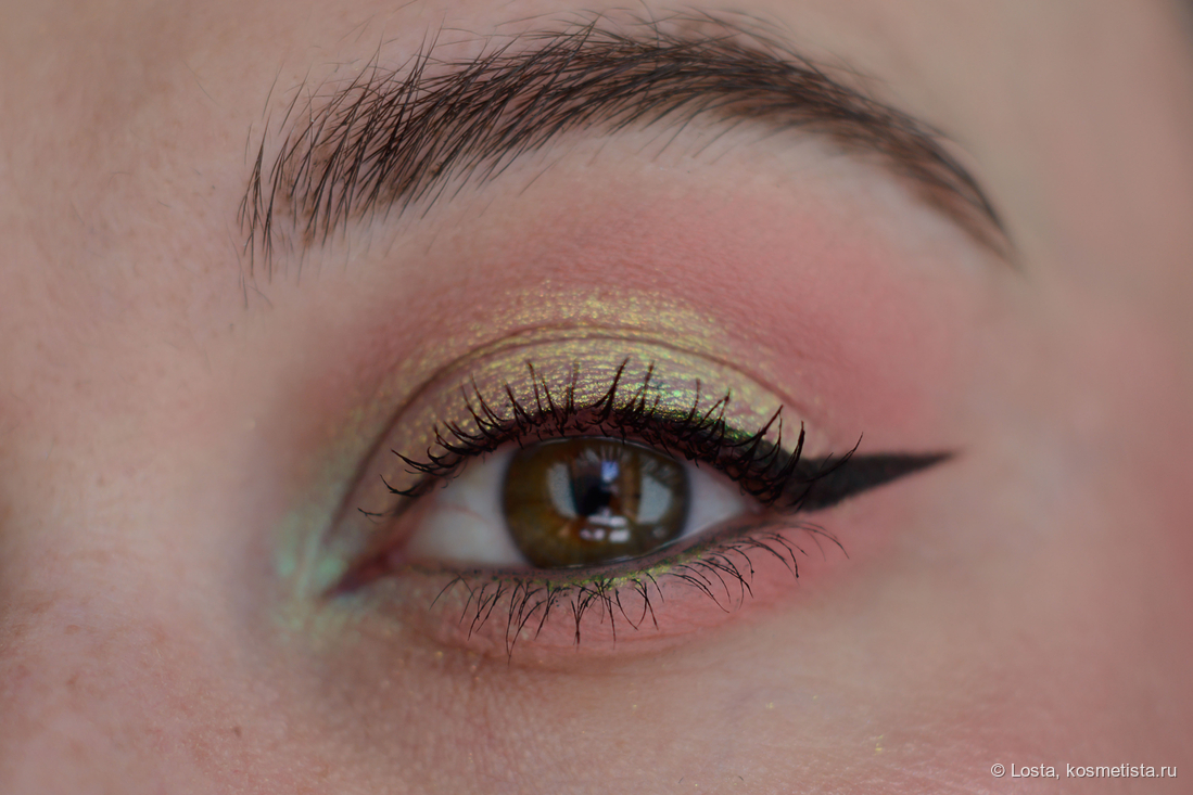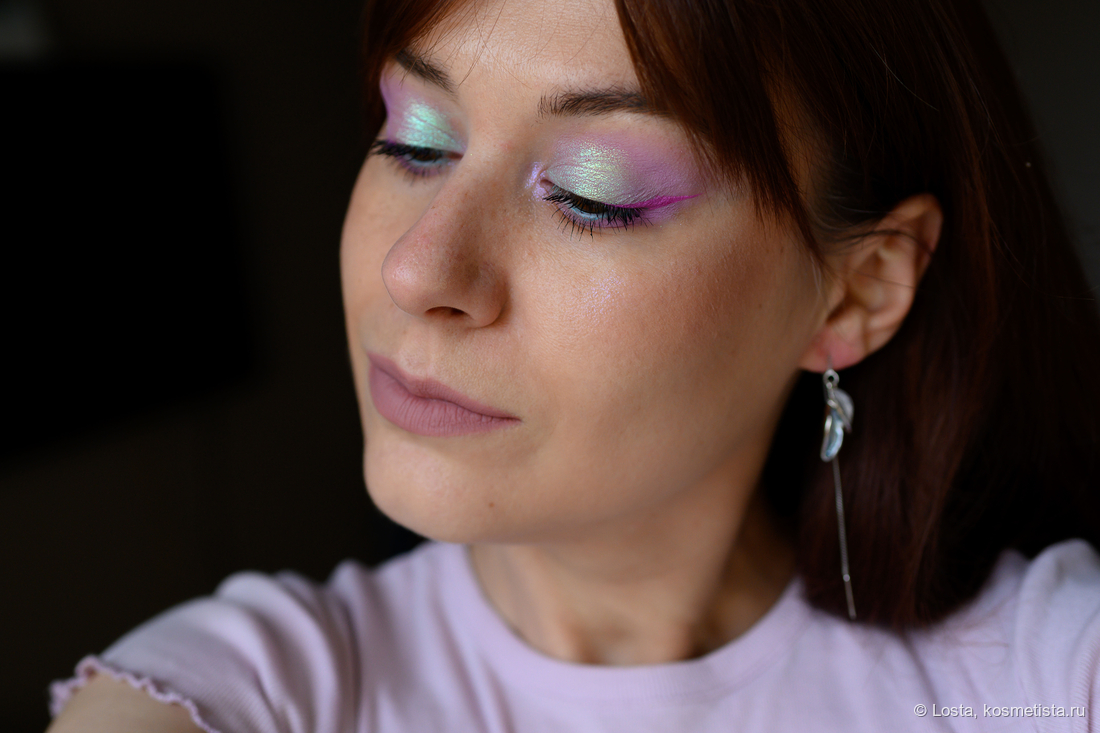 Тут лично меня тени порадовали больше, чем в первом запуске. Сейчас уже не вспомню с какой базой я их носила, но сейчас у меня UD и никакого скатывания и тускнения я не заметила. Кстати, даже вот сатин, который на мне прилично так в складках исчезал сейчас стал сидеть идеально, правда он менее плотно лежит, может и в этом дело.