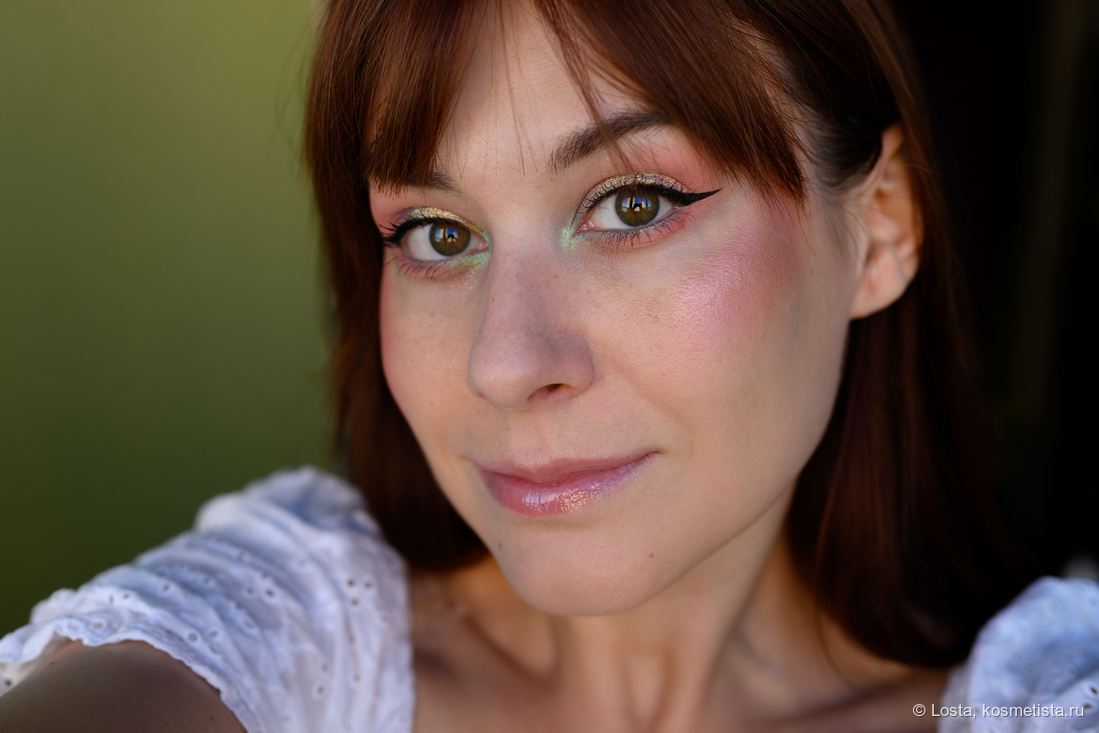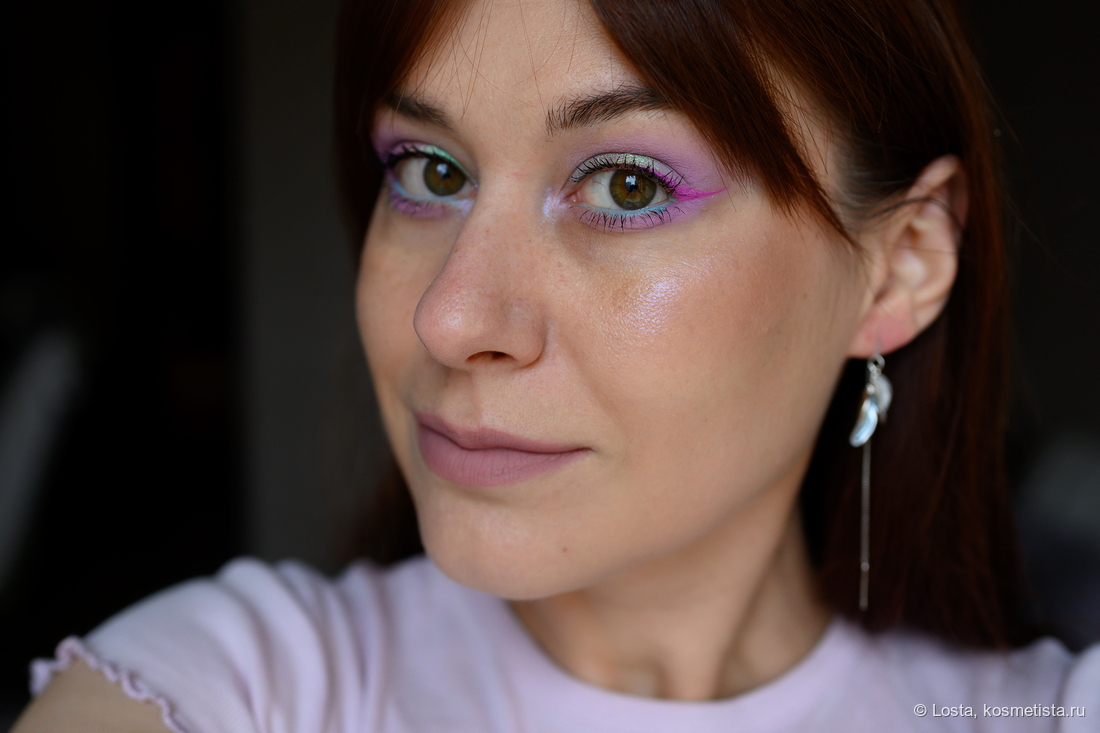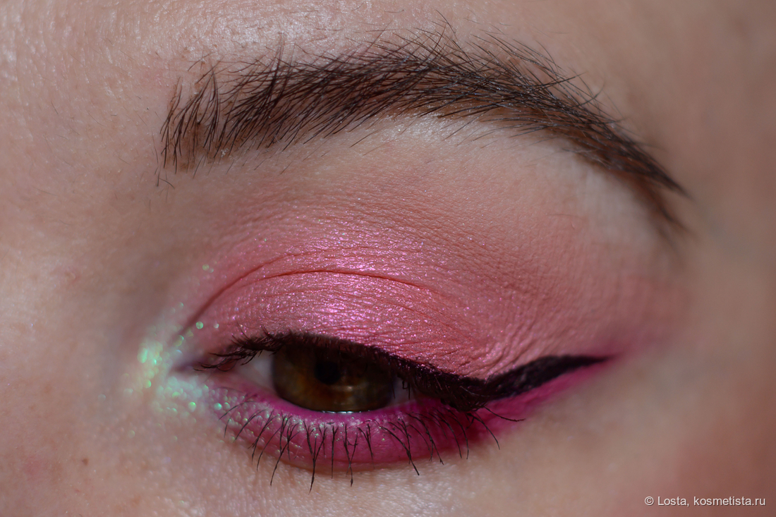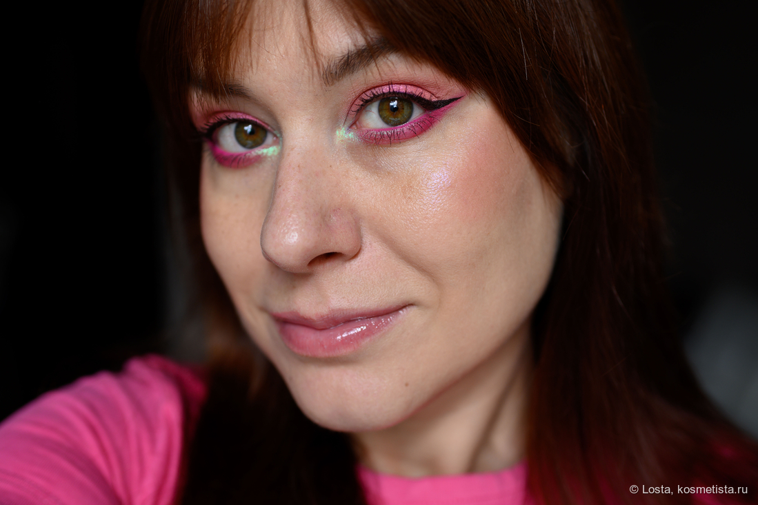 Тут лично меня тени порадовали больше, чем в первом запуске. Сейчас уже не вспомню с какой базой я их носила, но сейчас у меня UD и никакого скатывания и тускнения я не заметила. Кстати, даже вот сатин, который на мне прилично так в складках исчезал сейчас стал сидеть идеально, правда он менее плотно лежит, может и в этом дело.