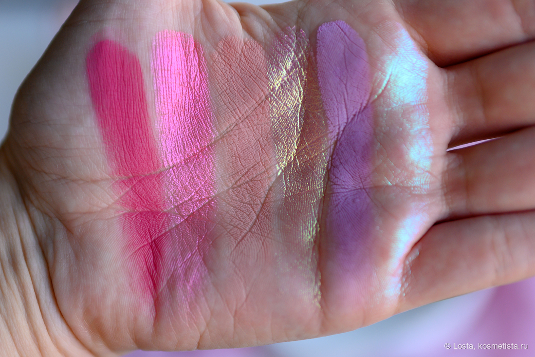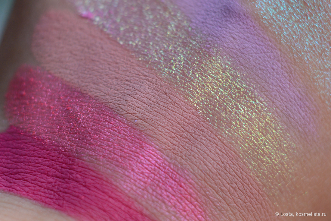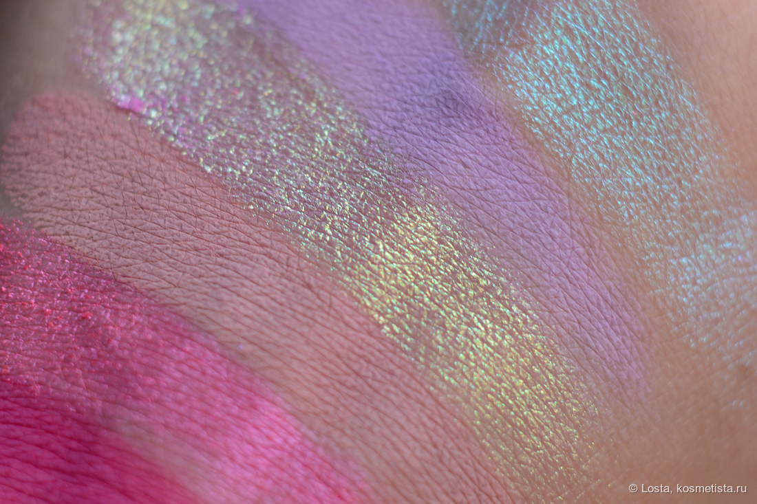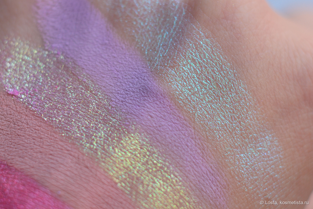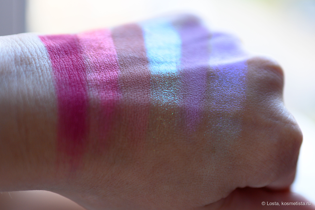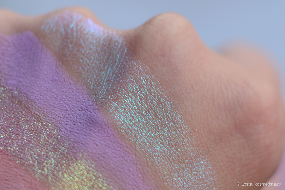 Как всегда — пыльность матовых заставляет использовать их максимально аккуратно, а то иначе пигмент будет просто излишне расходоваться. Дело привычное для меня, не критичное. Сатин и дуохромы — расходуются размеренно.