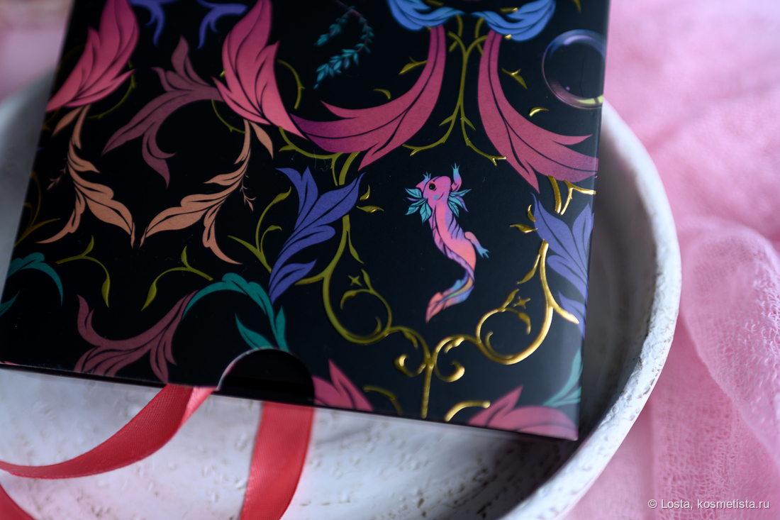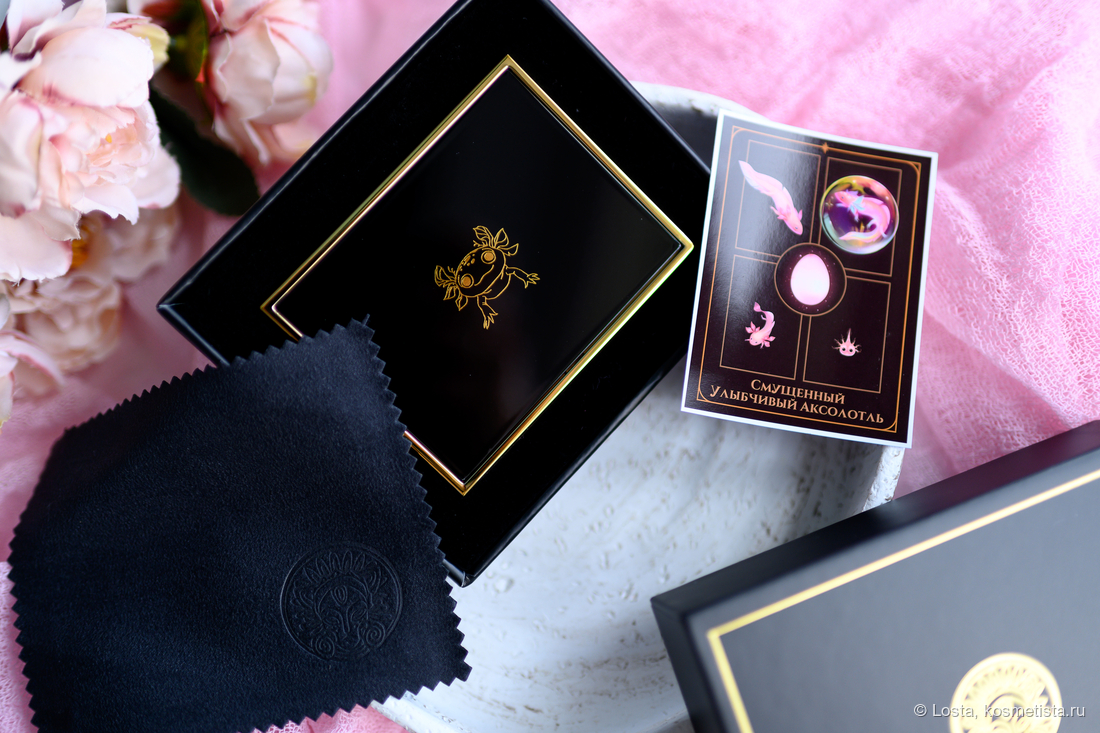 Спереди на палитре все тот же милый Аксолотль. Он прекрасен, хорошо, что рисунок прежний. Милаш. Выполнена палитра с золотыми вставками.