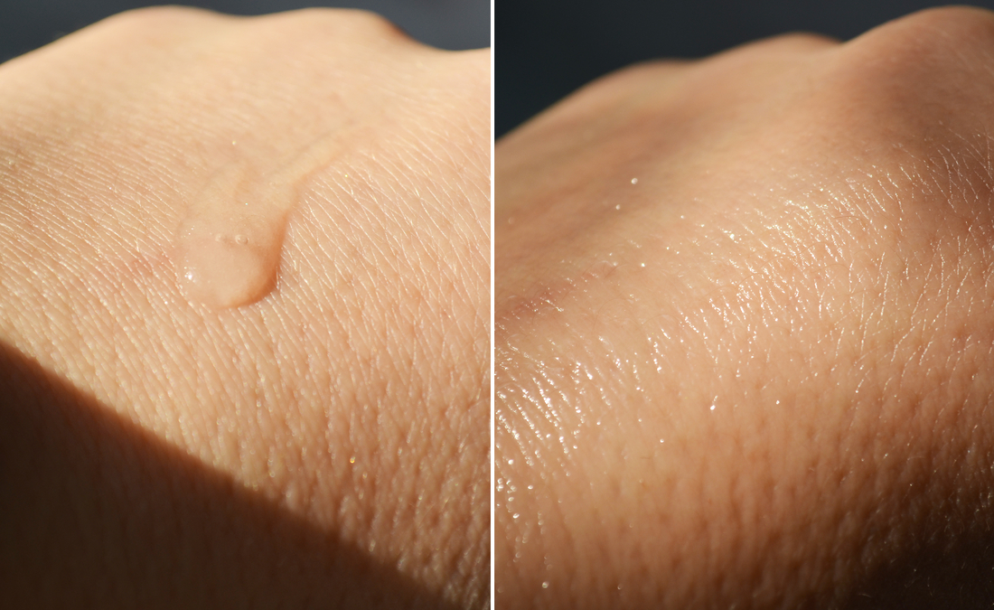 Сыворотка превращается в лёгкий-лёгкий гель, самую малость маслянистый, но это не та маслянистость, которую хочется смыть. Она быстро впитывается, оставляя кожу бархатной и сияющей, на коже не ощущается тяжёлой. Ощущения максимально комфортные!