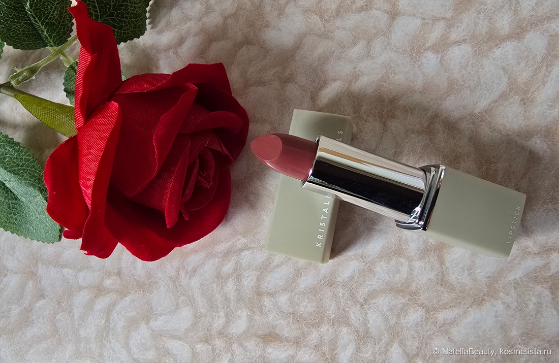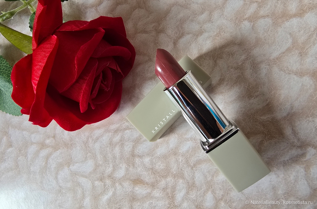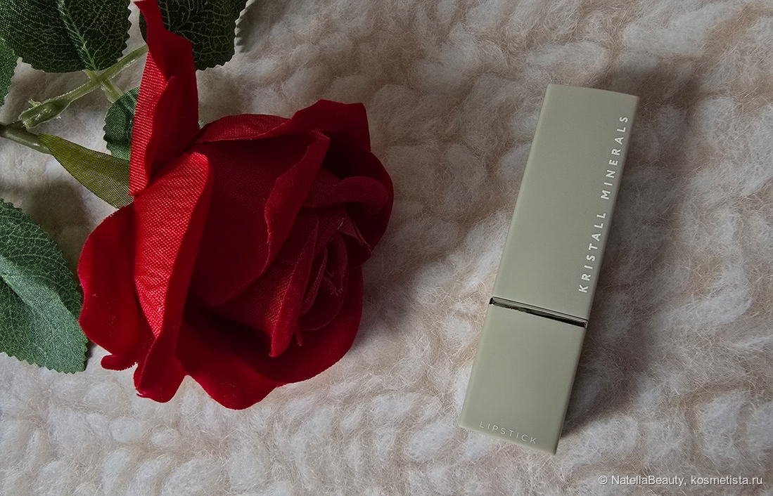 Футляр помады пластиковый, тяжеленький, нежного серого оттенка. Грани чёткие, футлярчик прямоугольной формы.