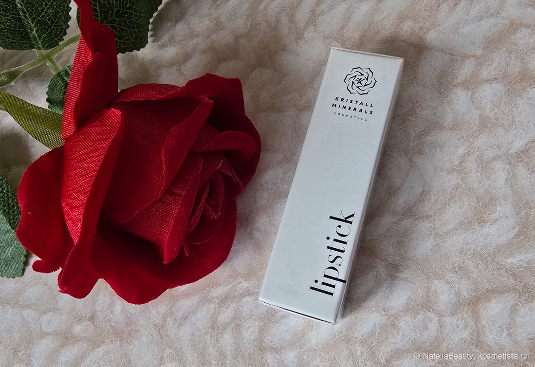 Помада находится в коробочке из плотного белого картона. Несмотря на лаконичный дизайн, на коробочке есть вся необходимая информация о продукте. Сверху на коробочке есть цветное обозначение оттенка, его номер и название.