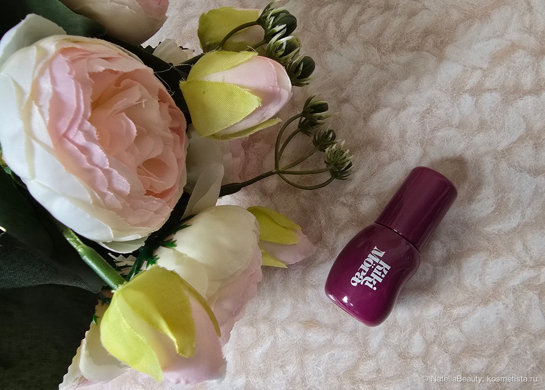 Текстура приятная, полугелевая. Тинт легко и быстро распределяется по коже губ, скользит по ним.