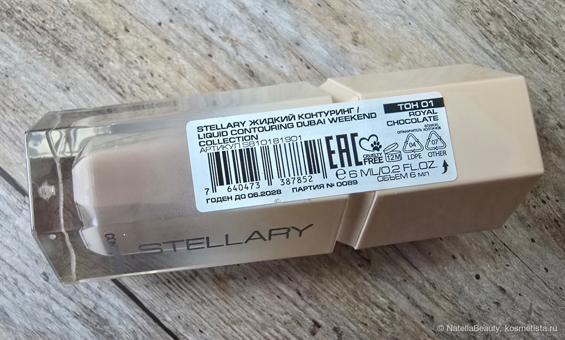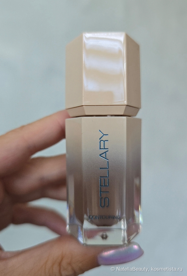 Контуринг находится в симпатичном бежевом пластиковом флакончике с четкими гранями. Изначально был запечатан защитным стикером, на котором можно найти всю необходимую информацию о продукте.