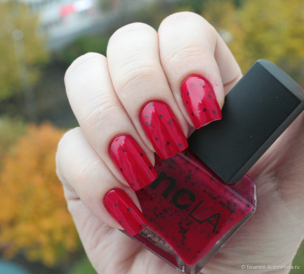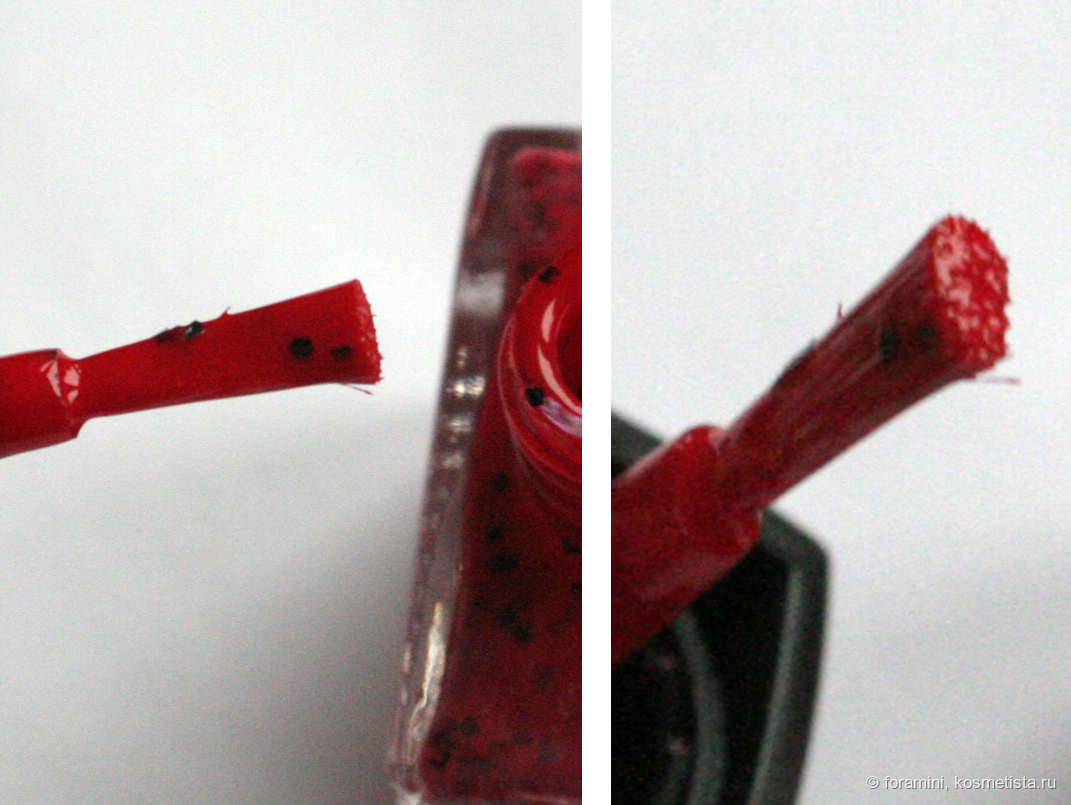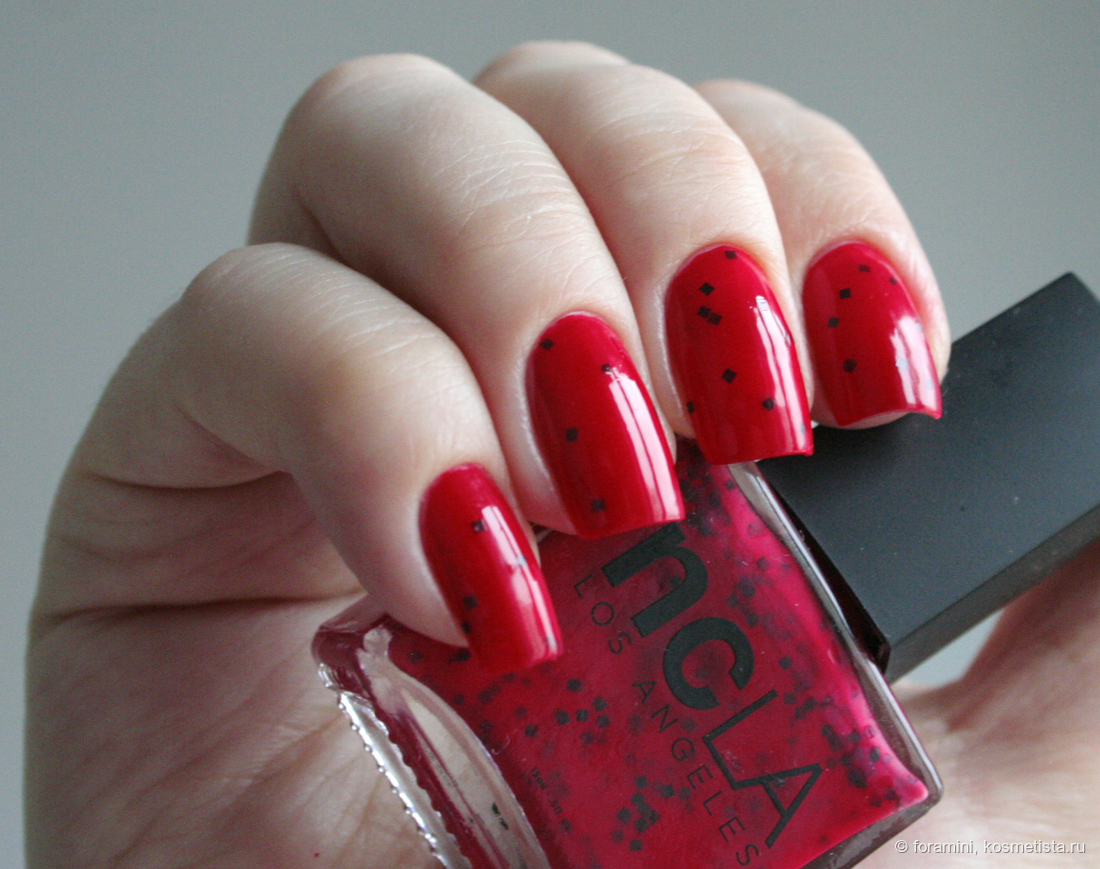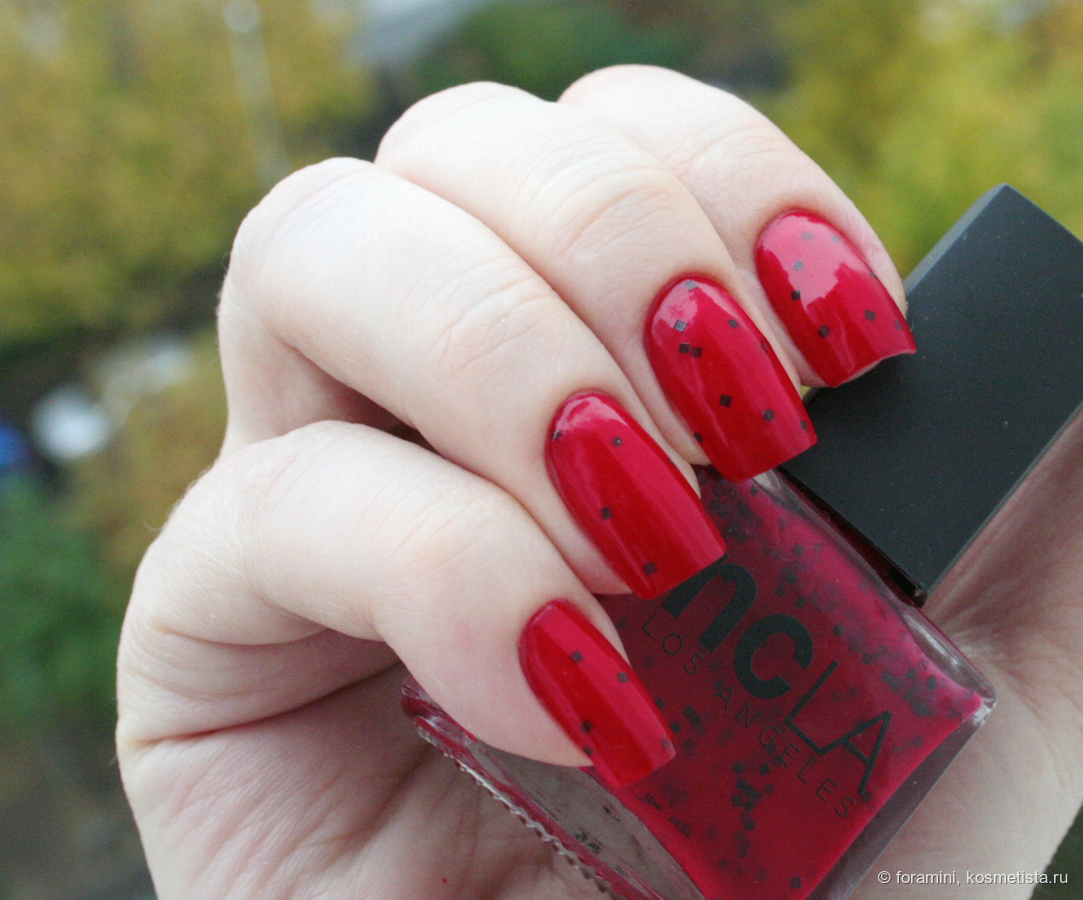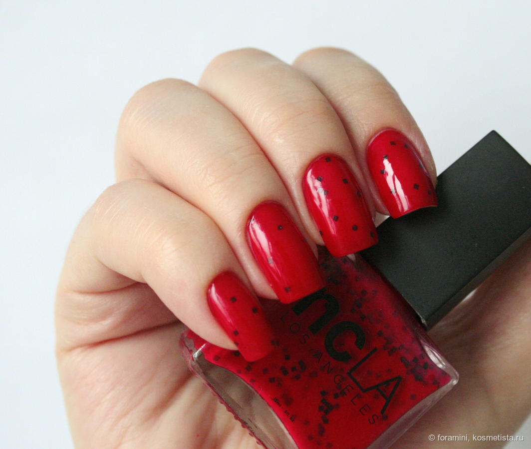 Снимается относительно легко для глиттерного лака, глиттера здесь не так много. Окрашивает кожу вокруг в красный при снятии, но это все отмывается с мылом. Ногтевую пластину не окрашивает.