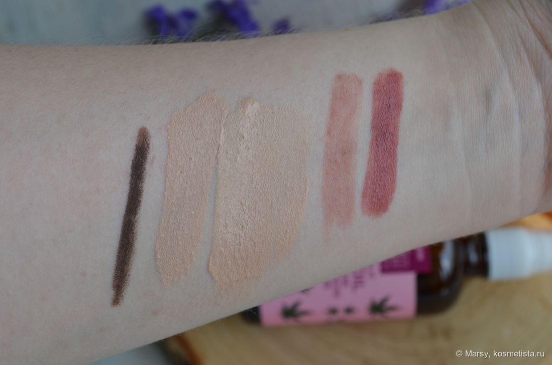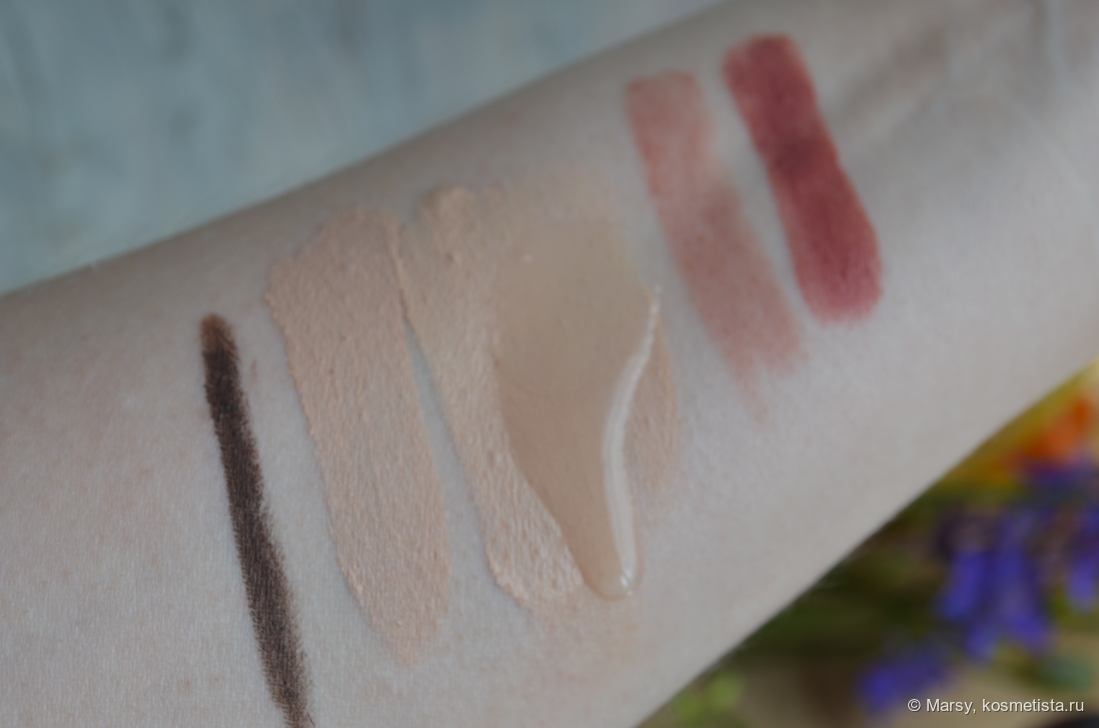 Посмотрим тест на руке. Нанесла несколько вариантов косметических средств.