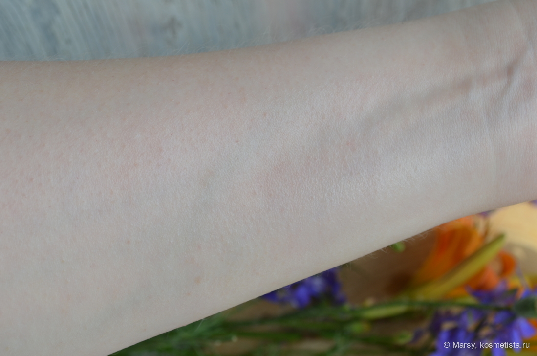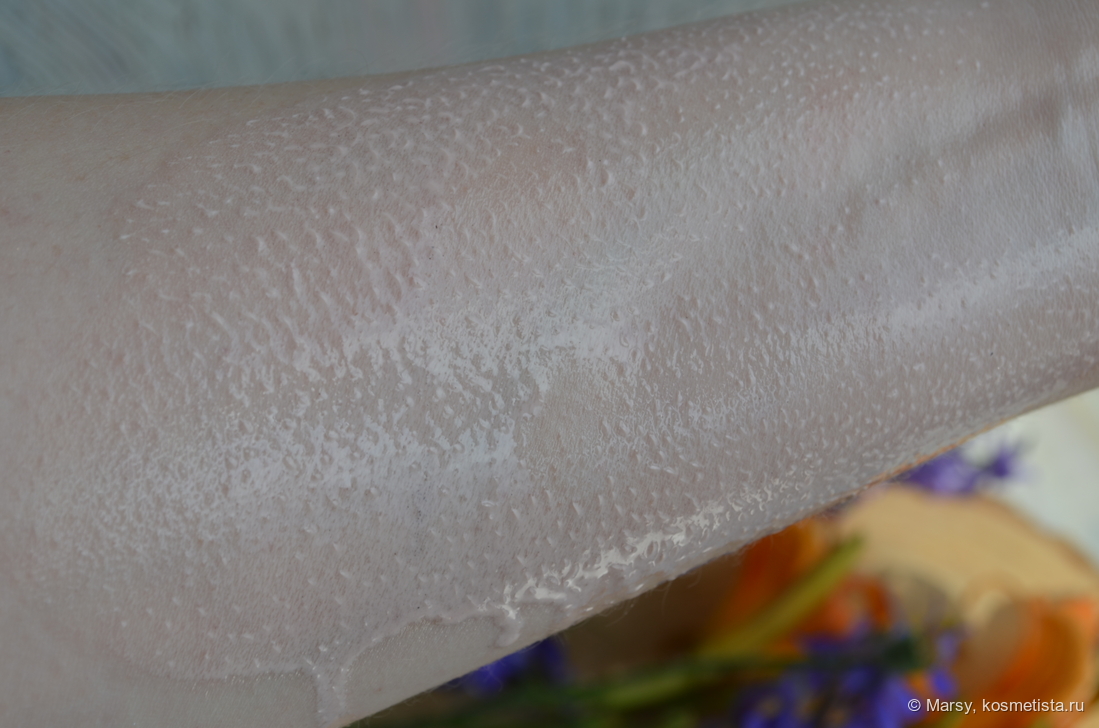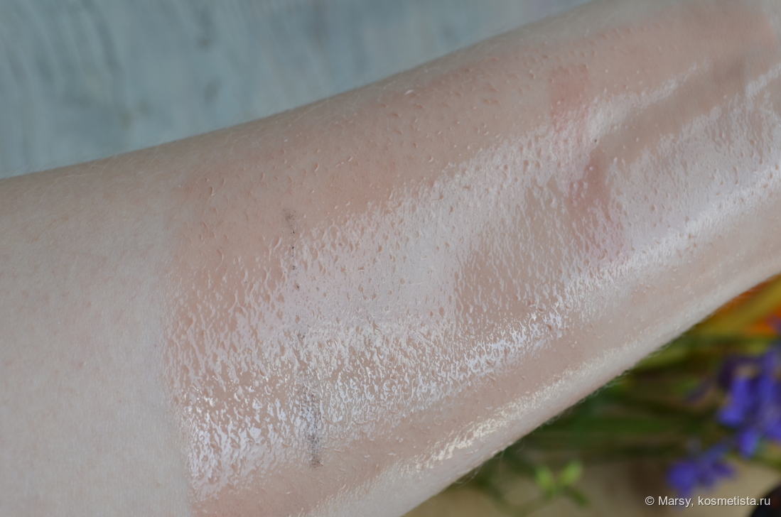 Текстура жидковатая, не жирная, не плотная. Легко распределяется и кожу за собой не тянет.