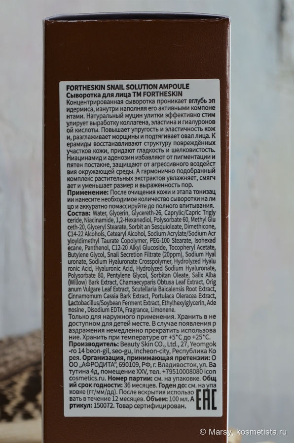 В свой уход за лицом я люблю включать муцин улитки, ценю его за быструю регенерацию и восстановление. Если есть воспалительные элементы, то они проходят быстрее и не остаётся пятен. Поэтому хорошо, когда такой компонент присутствует, особенно в сыворотке, которую на мой взгляд проще вписать в систему. Но тут мне попалась именно сыворотка — эмульсия, я решила, что в зиму это отличный вариант.