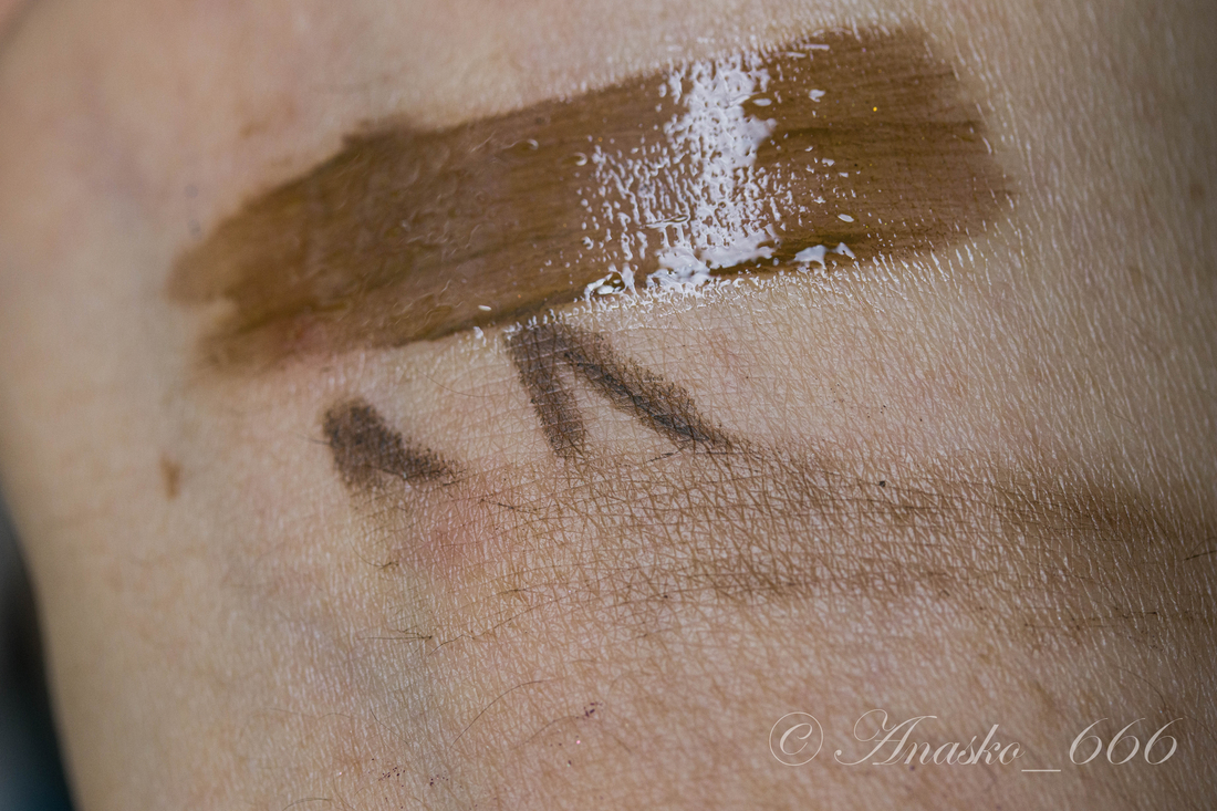 Карандаш не фиксируется, просто провела пальцем минут через 40 после нанесения:
