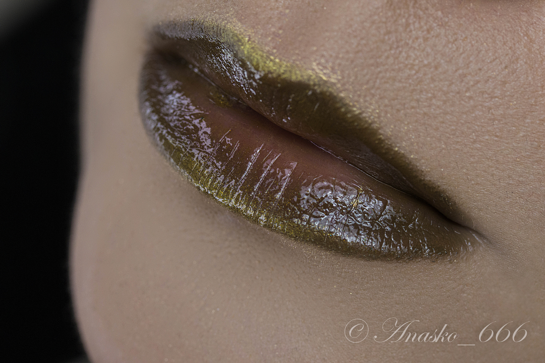 Глянцевый тинт в совешенно нетипичном для продукта для губ оттенке. Корчинево-болотный глянцевый продукт, который тинтует в серо-черничный. Даже если вариант сразу после нанесения вам совсем не по душе, то тинт, возможно придется по вкусу.