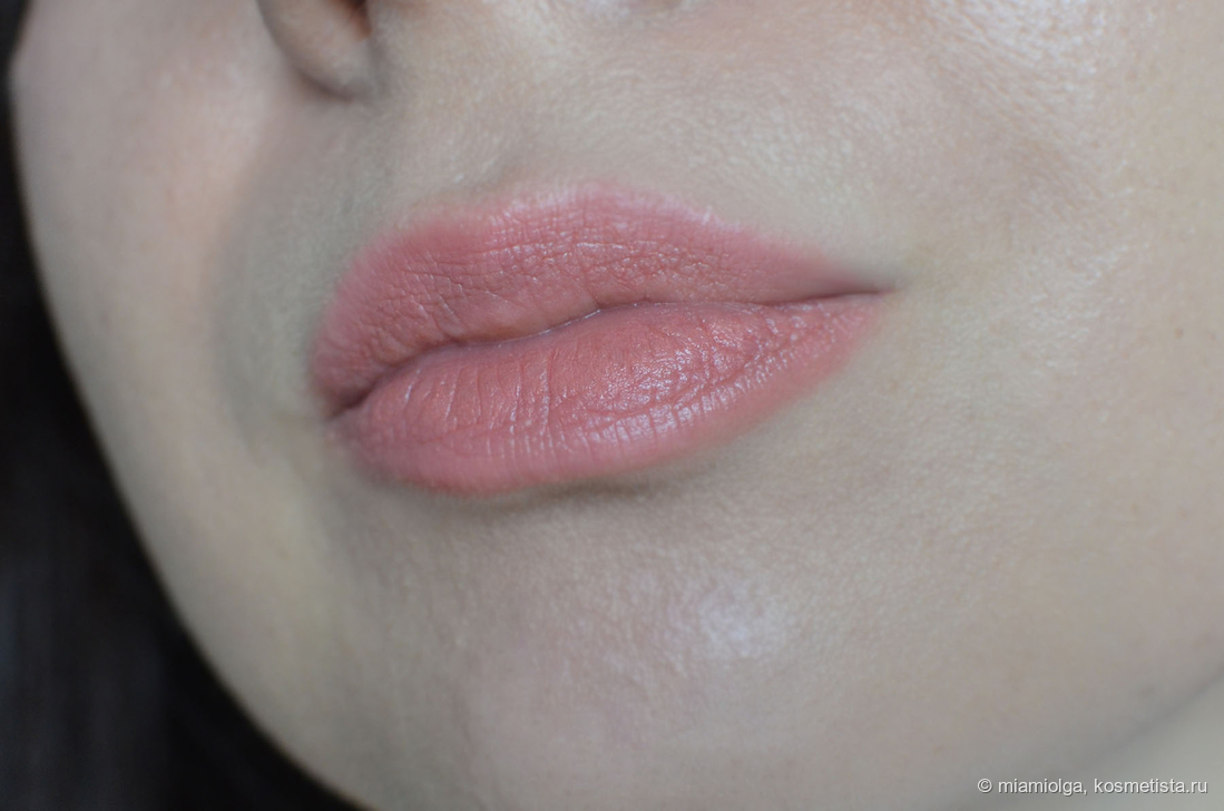 У меня довольно проблемные губы, часто сухие, с выраженным рельефом, в межсезонье особенно часто шелушатся. Для фото никак не готовила — скраб не делала, бальзам не наносила. Помада и так выглядит хорошо.