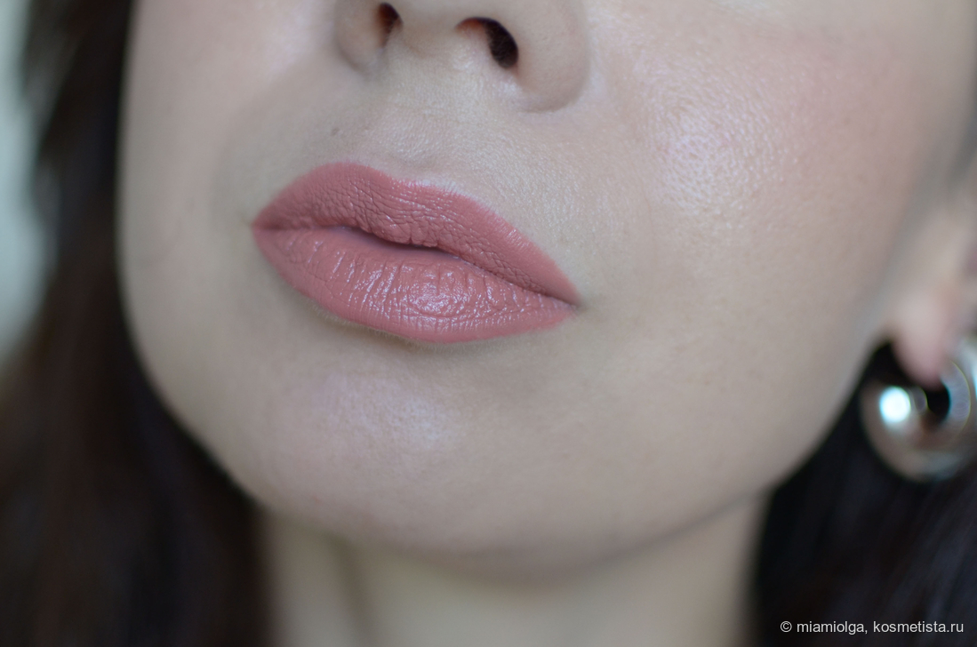 В плотном варианте нанесения определенно требует макияжа, желательно в теплых оттенках. Кожа точно должна быть проработана, иначе помада будет выглядеть чужой. Стойкость приличная. Помада продержалась более 4 часов, и даже выдержала плотный завтрак и капучино.